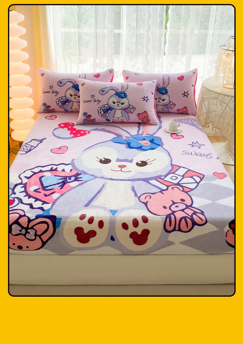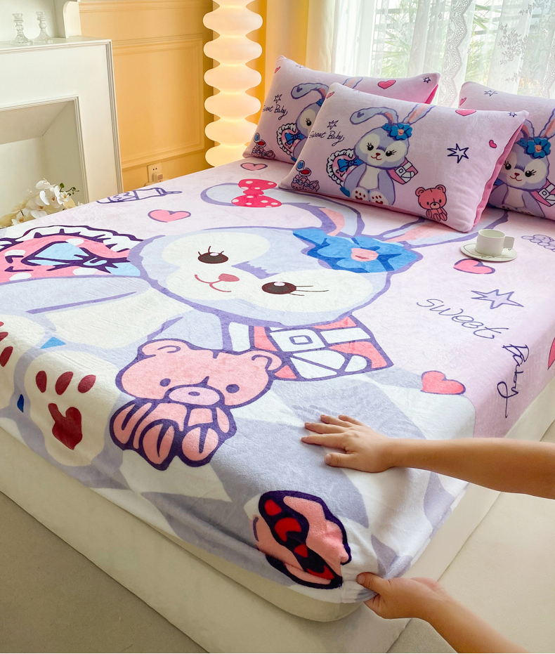 一电 外贸2025新款卡通珊瑚绒床笠单件床罩冬季加厚牛奶绒床垫保护罩全包床单套 冰冰星黛露