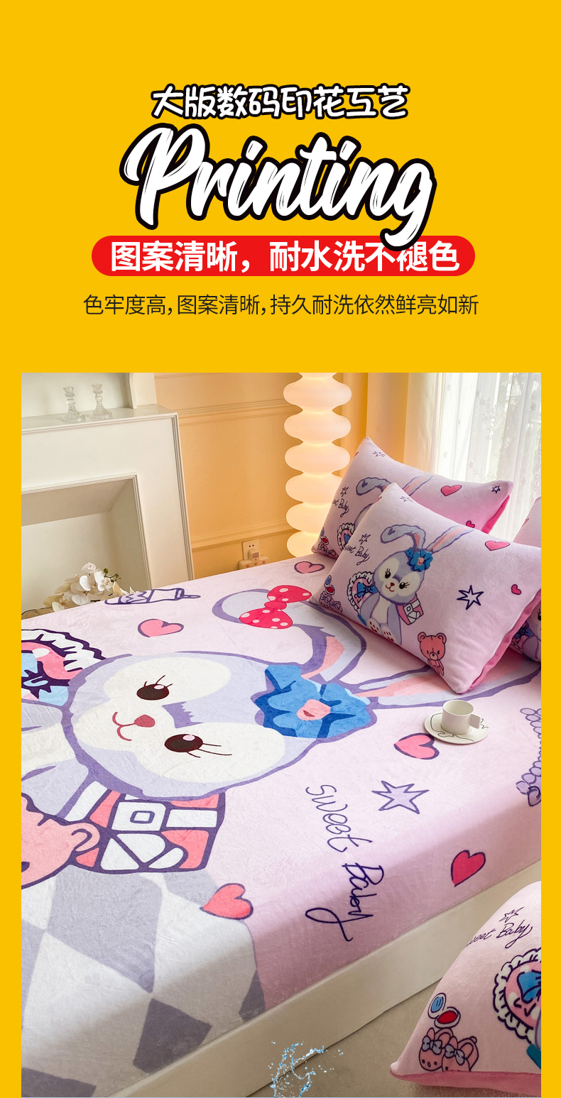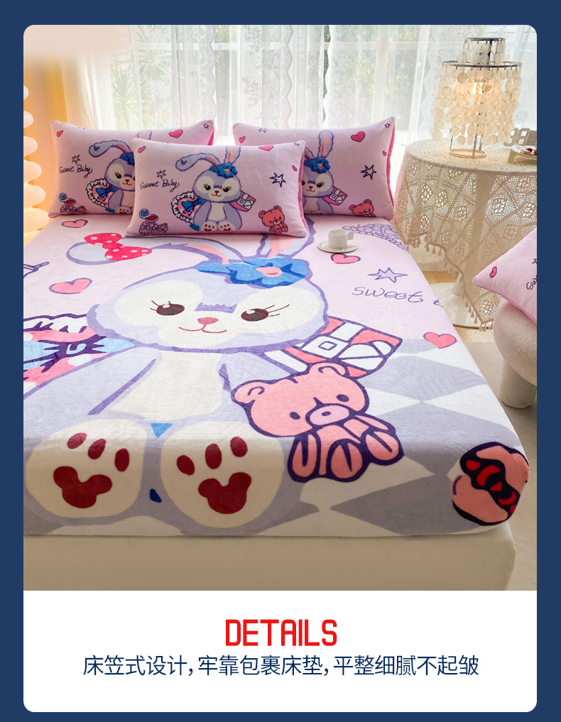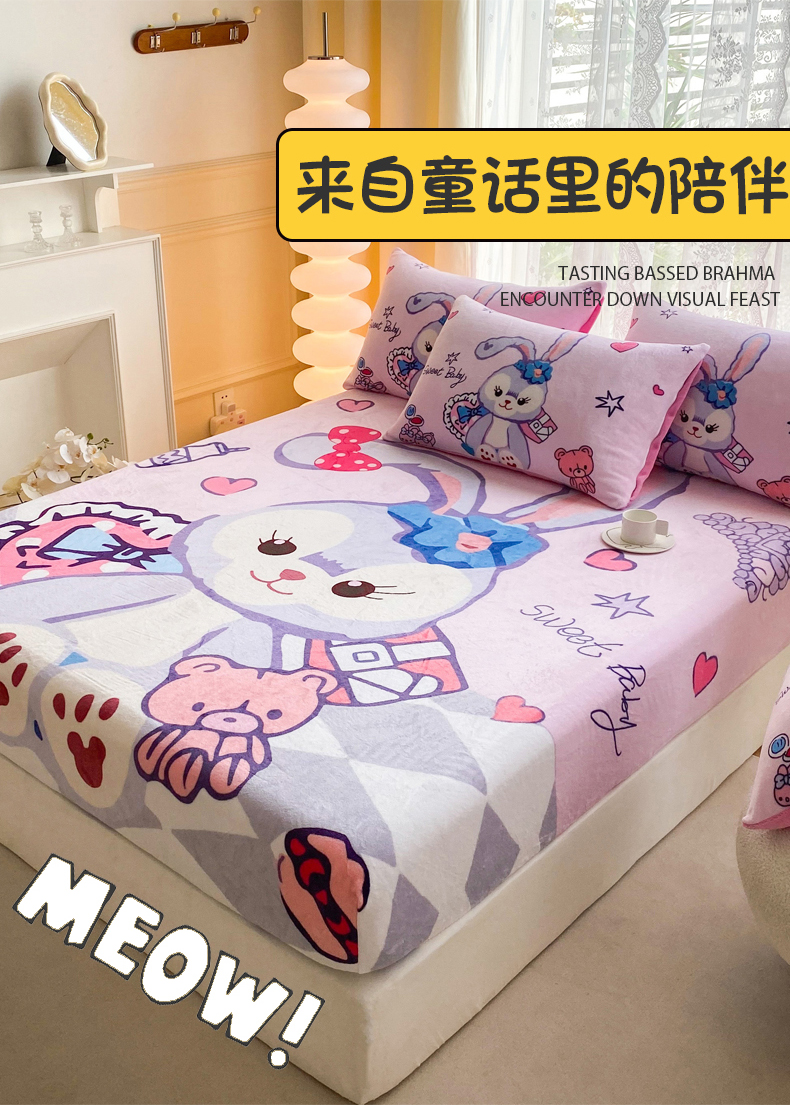 • 91家纺网 家纺一手货源 找家纺 一电 外贸2025新款卡通珊瑚绒床笠单件床罩冬季加厚牛奶绒床垫保护罩全包床单套 冰冰星黛露