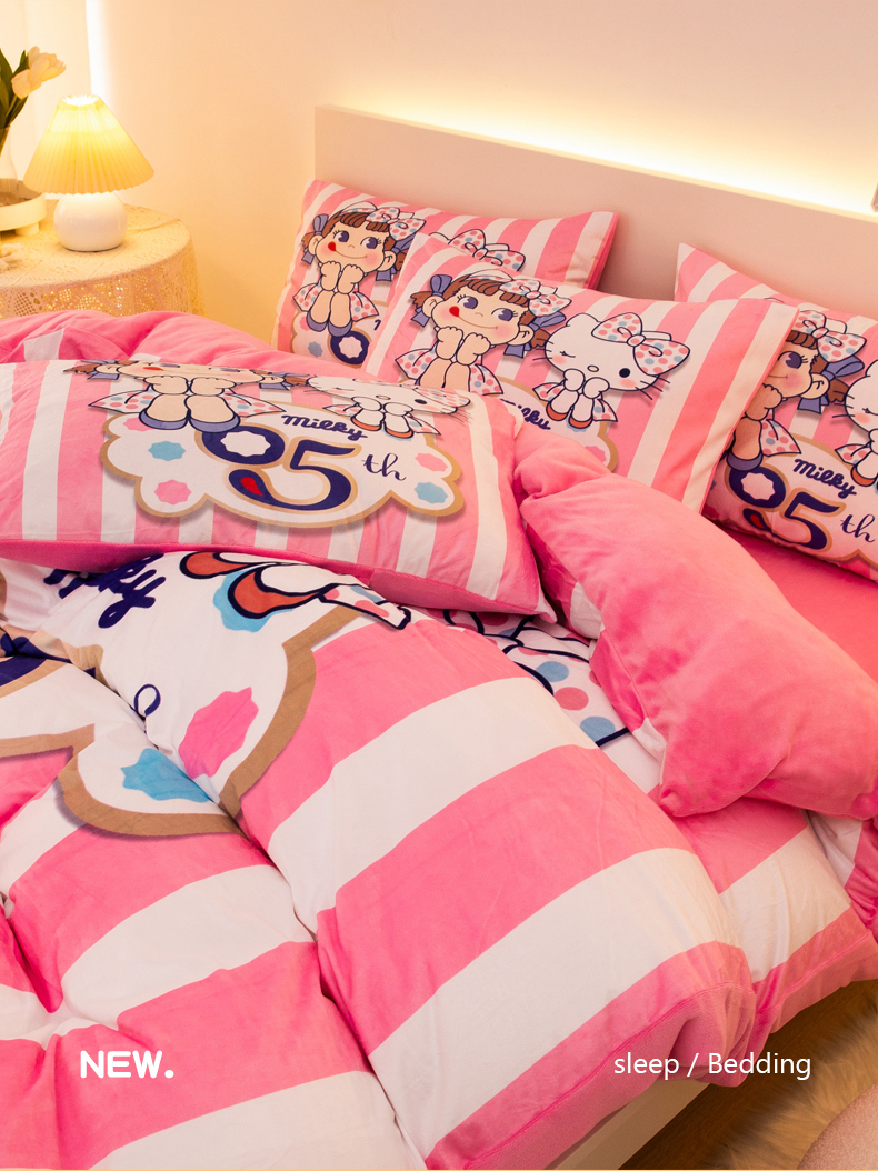 (总)一电 2025新款冬季双面牛奶珊瑚绒床上四件套法兰绒床品加绒被套床单三件套-第三批,公主库洛米,天使库洛米,甜筒库洛米,小兔子,圆点库洛米