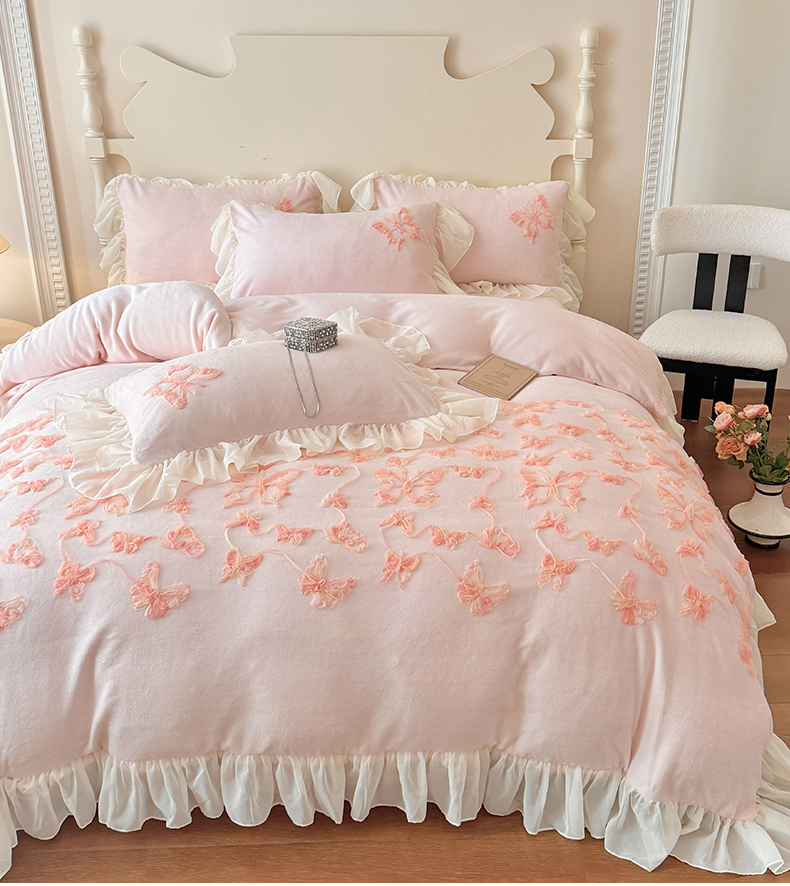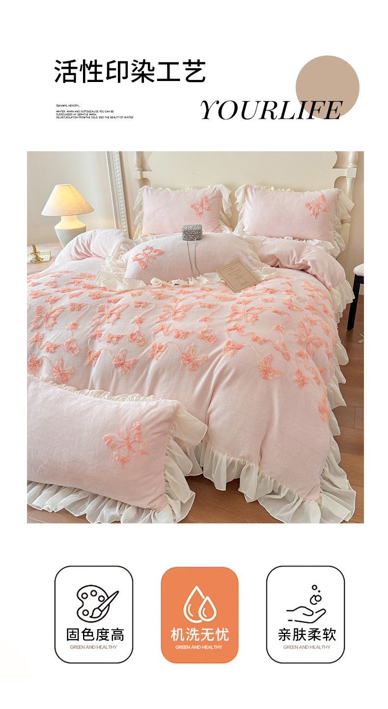 (总)富盛 2024新款水洗亲肤棉立体刺绣四件套公主风四件套-蝴蝶系列,蝴蝶-粉,蝴蝶-白,蝴蝶-黄,蝴蝶-嫩绿,蝴蝶-紫,蝴蝶-浅绿,蝴蝶-豆沙,蝴蝶-蓝