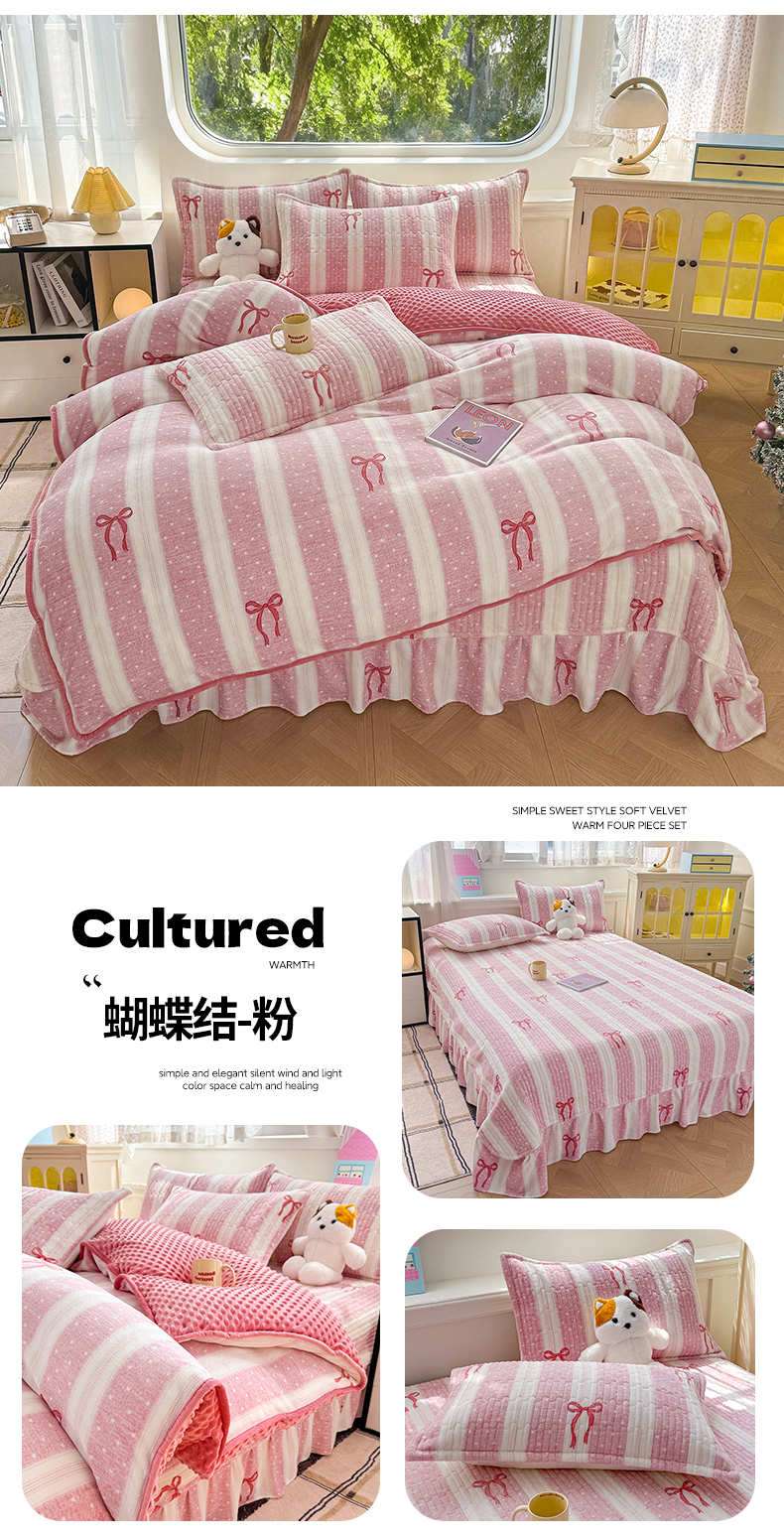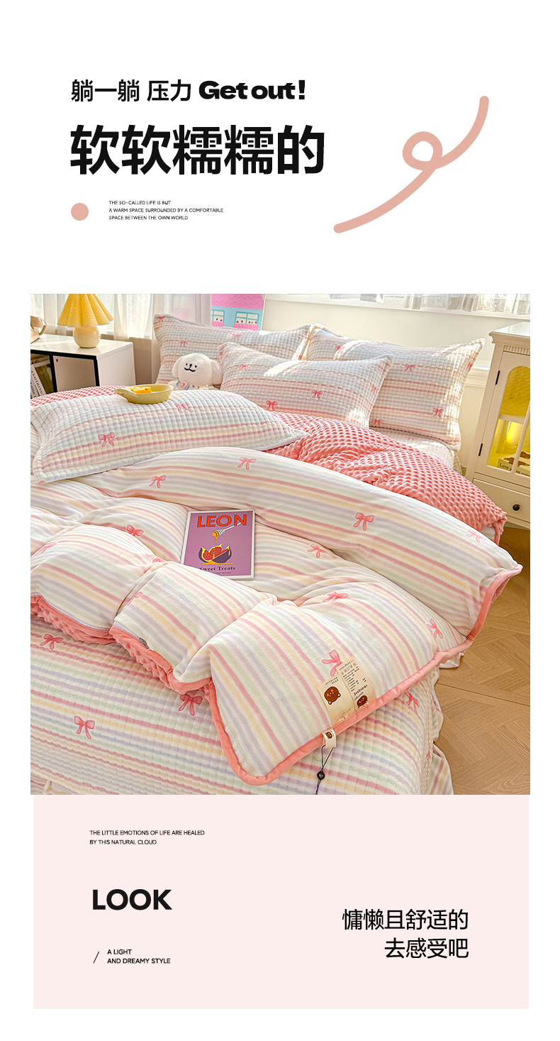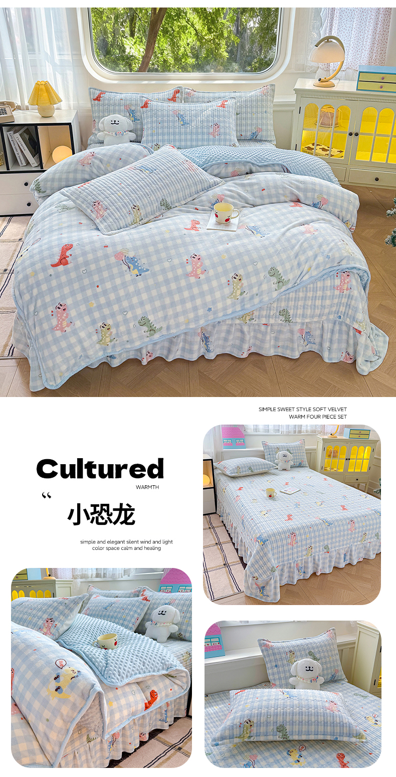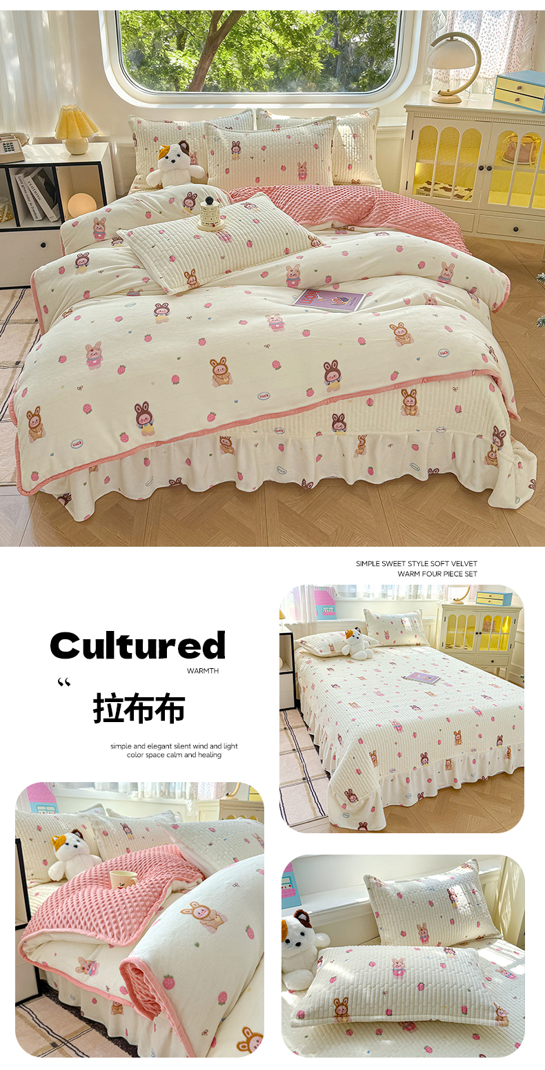 (总)豫见家纺 2025新款高克重牛奶绒夹棉床盖四件套,花簇,爱如星辰,安妮熊,豹纹粉,豹纹蓝,豹纹棕,波点蝴蝶结,波点时代-白,波点时代-紫,彩虹蝴蝶结,彩虹糖,草莓粉兔,粉格蝶韵,复古心悦,花园邂逅,花韵玫瑰,灰调爱恋,恐龙派对,蓝格蝶韵,罗格先生,玫瑰物语,梦幻大耳狗,茉香,木松花,淘气兔,田园幻梦,甜心凯蒂-粉,甜心凯蒂-蓝,甜心凯蒂-棕,条纹蝴蝶结,小玫瑰,小南瓜粉,小南瓜蓝,小蔷薇,小晴天,新潮风尚,熊猫乐园,熊猫乐园-粉,英伦格调,樱桃心愿