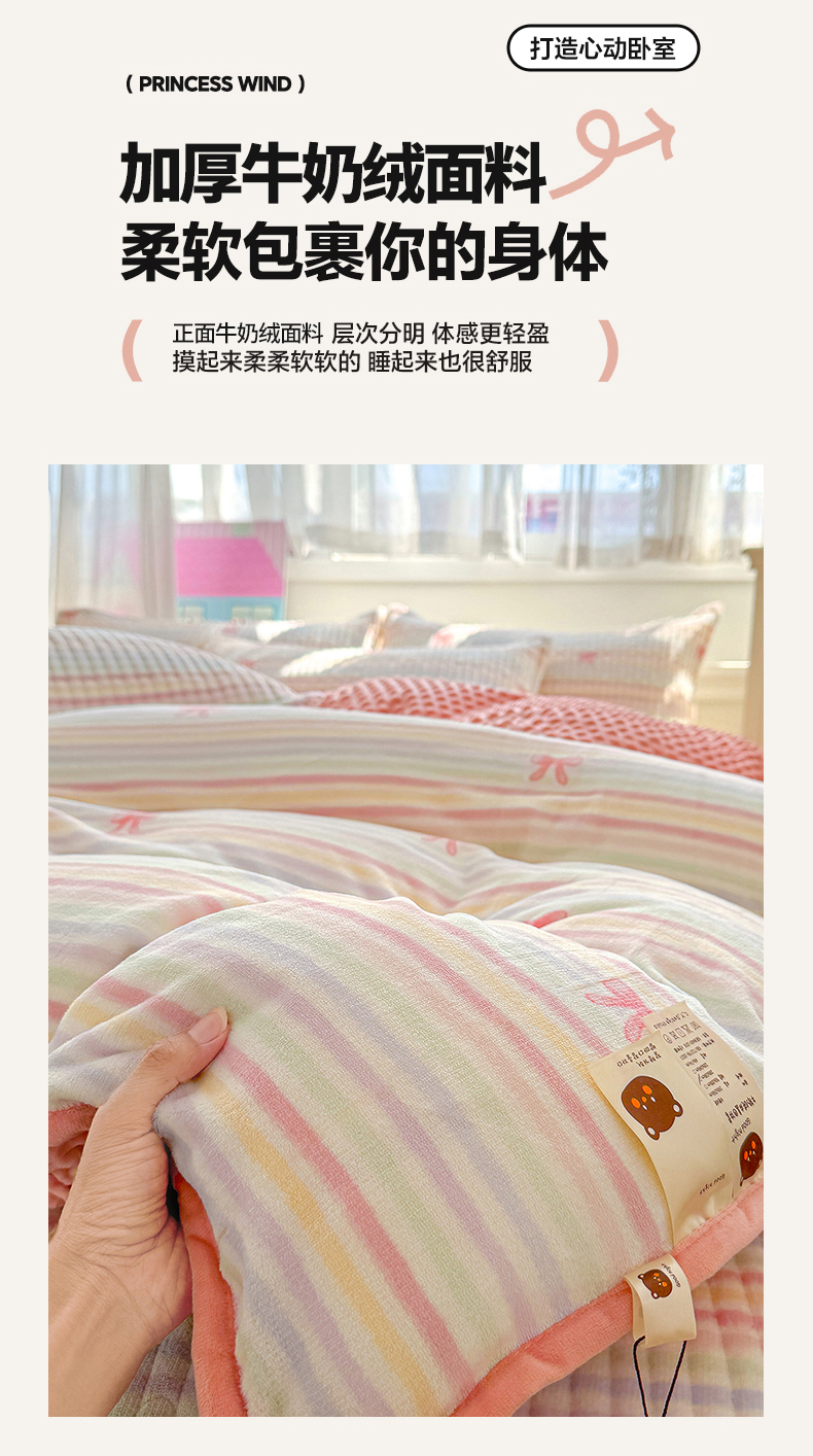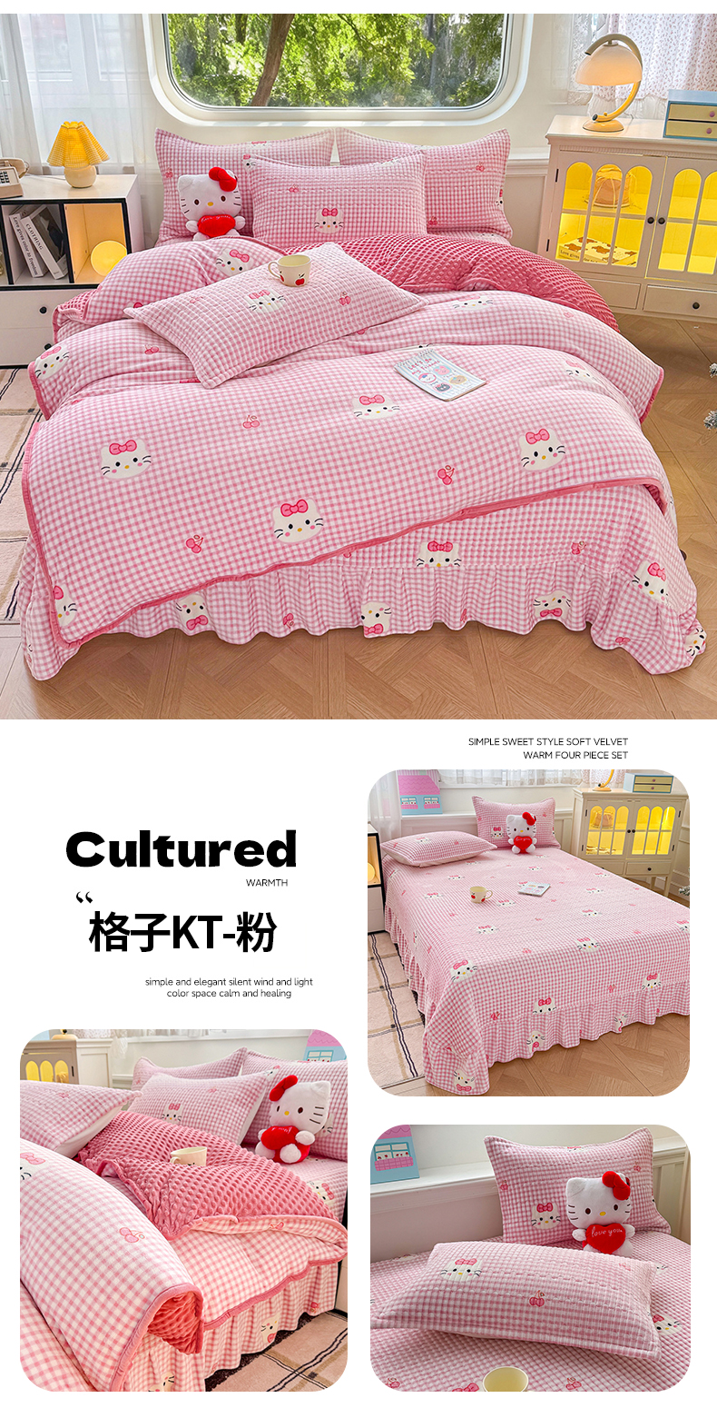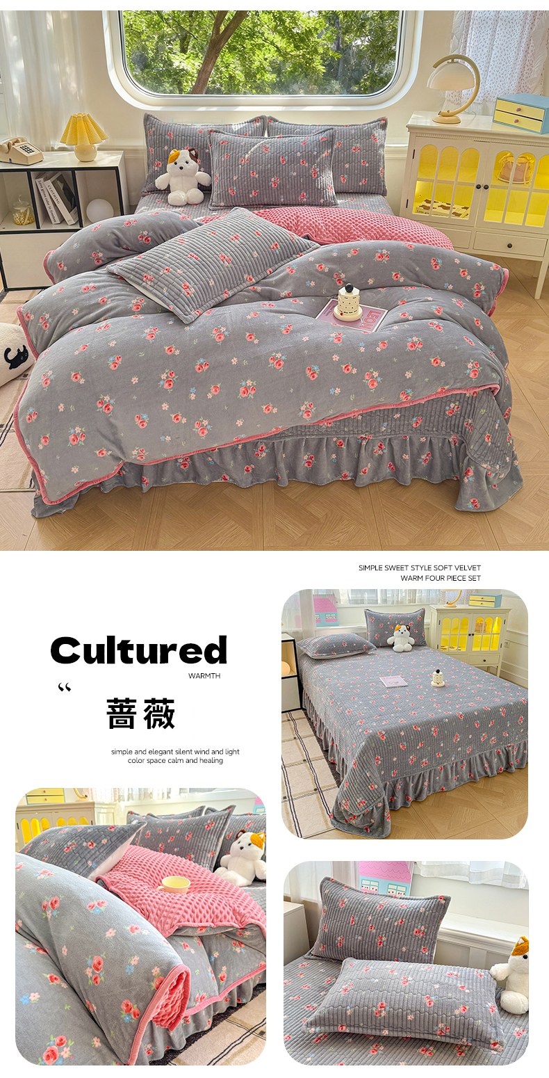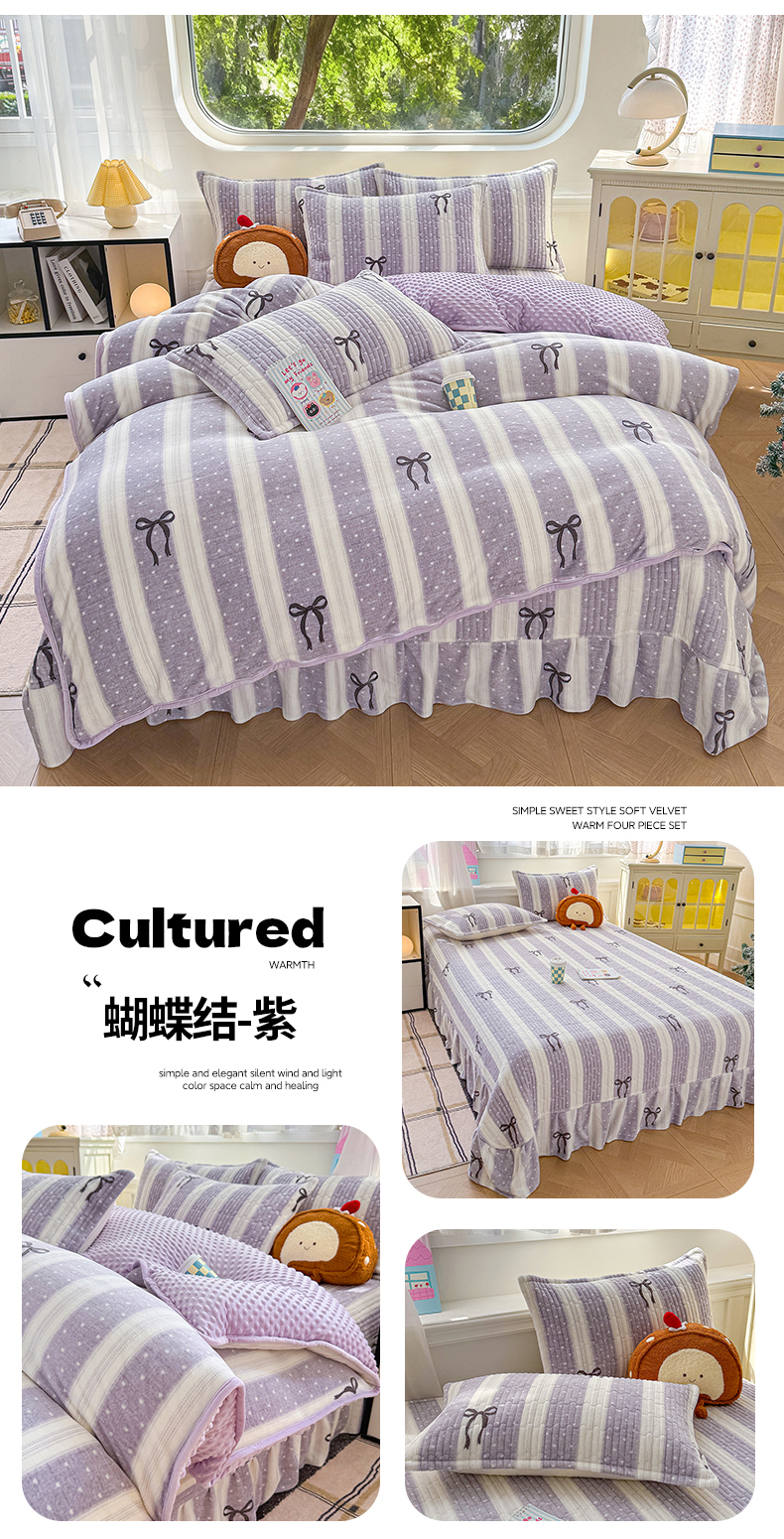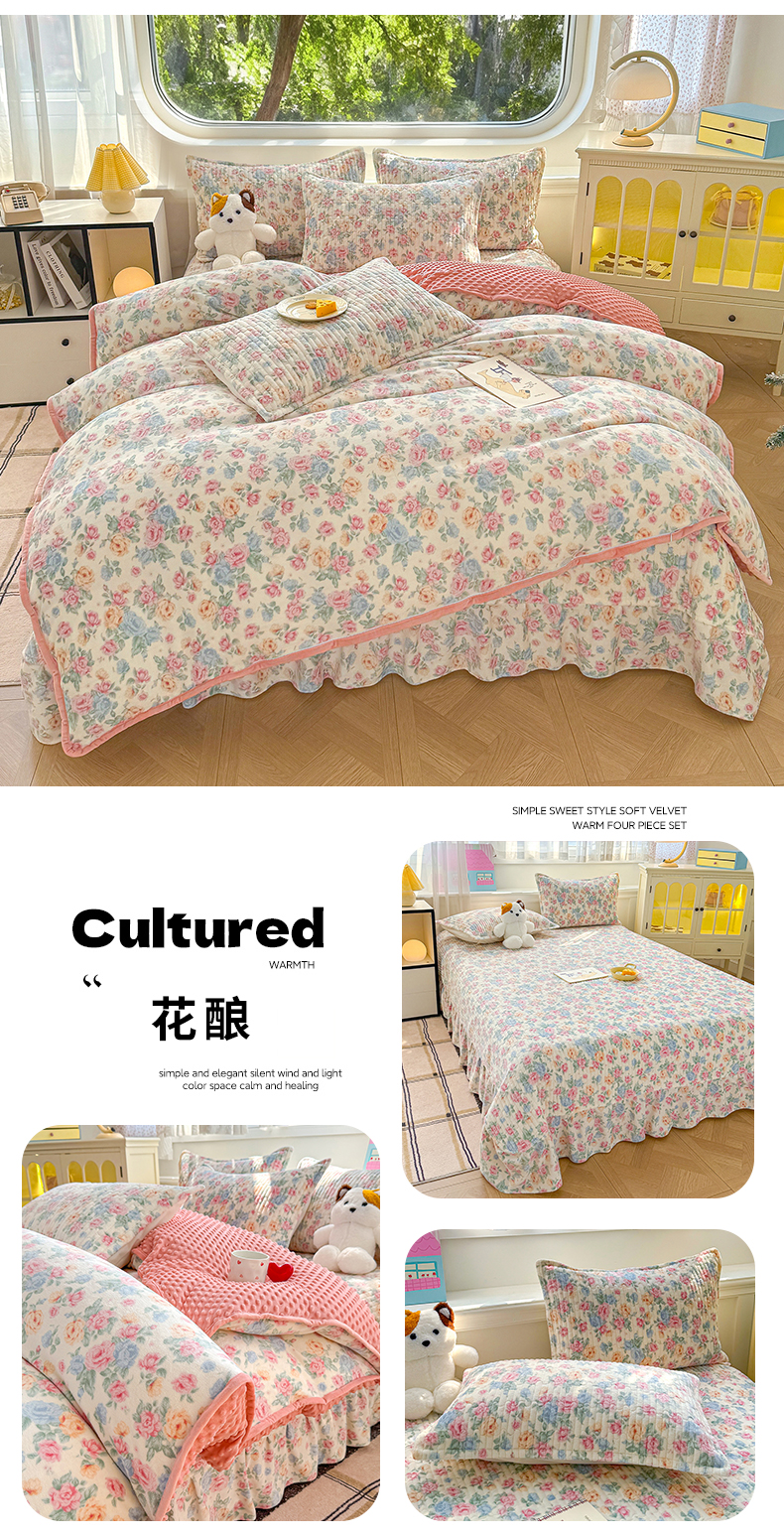 (总)豫见家纺 2025新款高克重牛奶绒夹棉床盖四件套,花簇,爱如星辰,安妮熊,豹纹粉,豹纹蓝,豹纹棕,波点蝴蝶结,波点时代-白,波点时代-紫,彩虹蝴蝶结,彩虹糖,草莓粉兔,粉格蝶韵,复古心悦,花园邂逅,花韵玫瑰,灰调爱恋,恐龙派对,蓝格蝶韵,罗格先生,玫瑰物语,梦幻大耳狗,茉香,木松花,淘气兔,田园幻梦,甜心凯蒂-粉,甜心凯蒂-蓝,甜心凯蒂-棕,条纹蝴蝶结,小玫瑰,小南瓜粉,小南瓜蓝,小蔷薇,小晴天,新潮风尚,熊猫乐园,熊猫乐园-粉,英伦格调,樱桃心愿