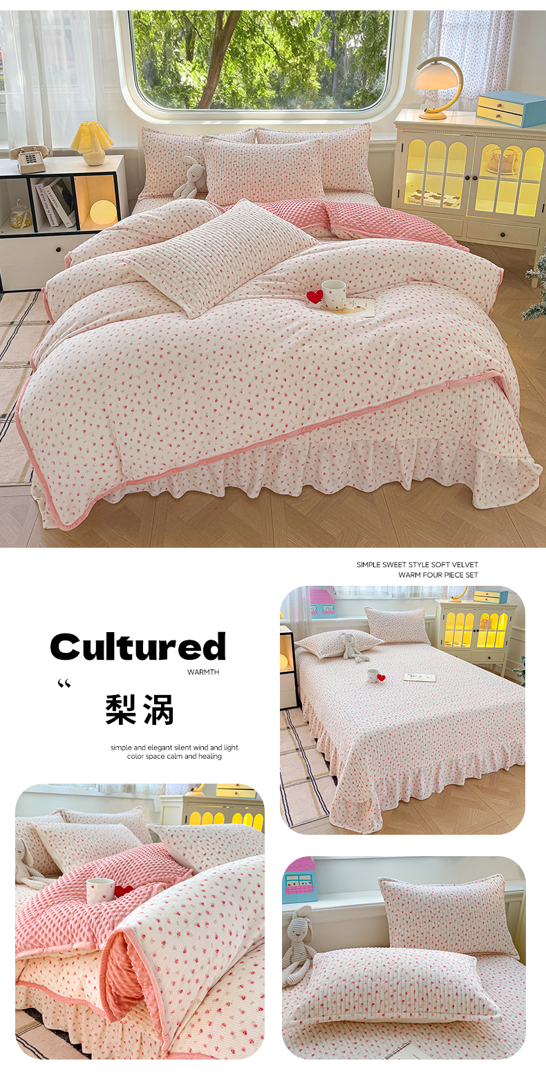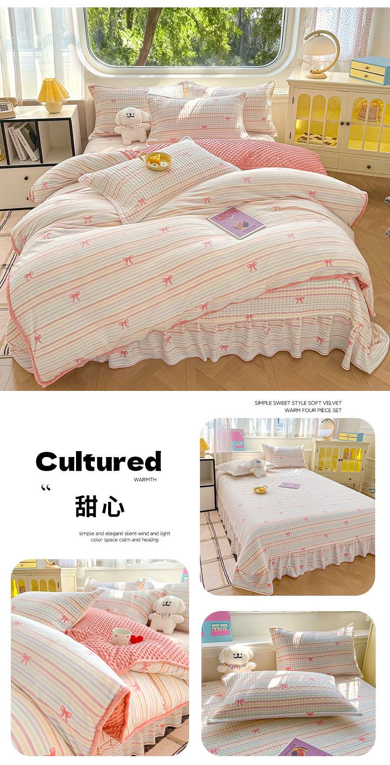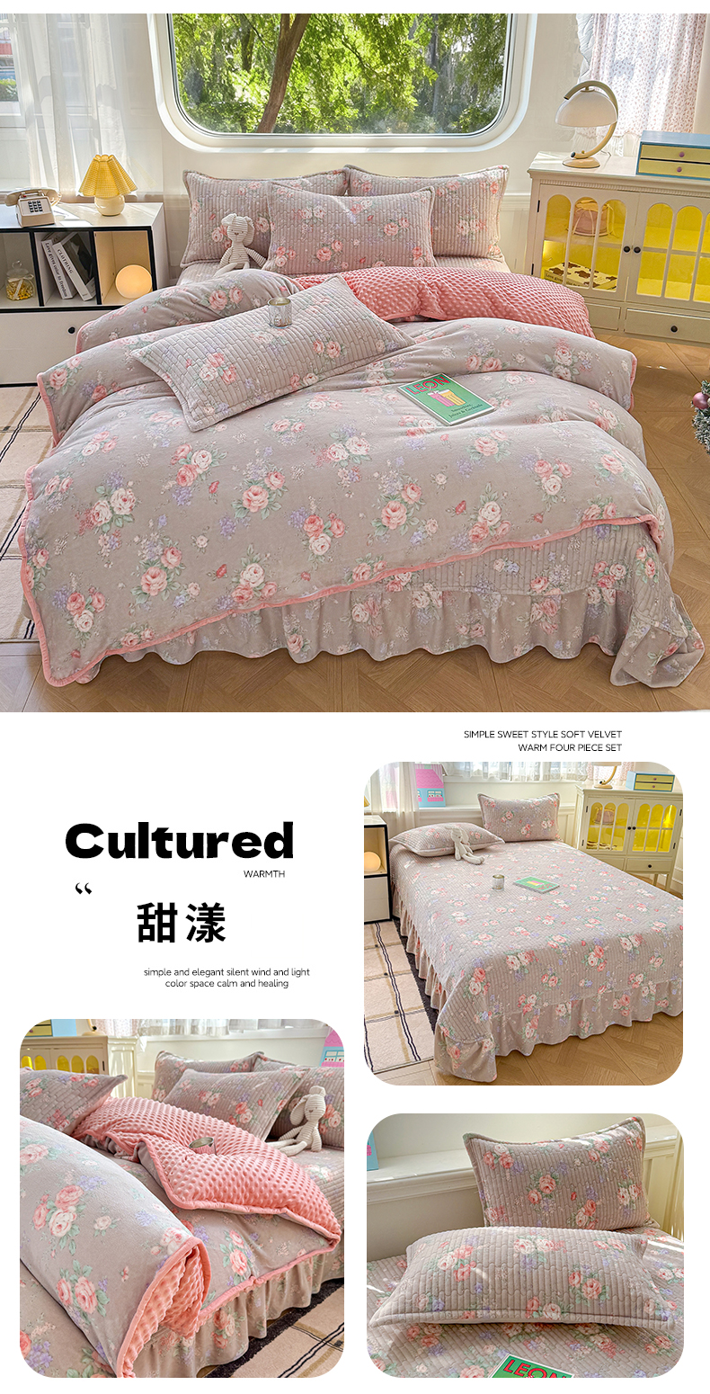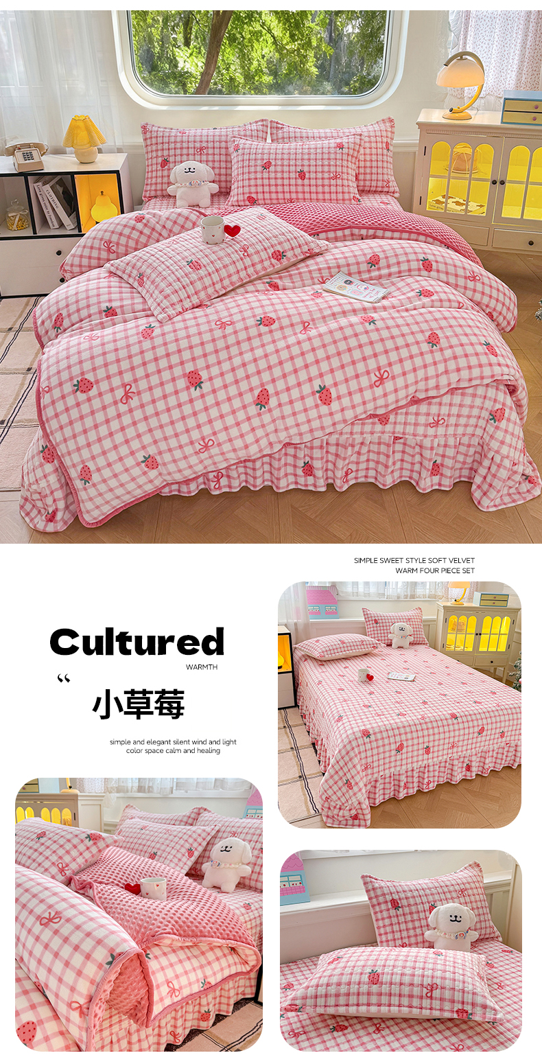 (总)豫见家纺 2025新款高克重牛奶绒夹棉床盖四件套,花簇,爱如星辰,安妮熊,豹纹粉,豹纹蓝,豹纹棕,波点蝴蝶结,波点时代-白,波点时代-紫,彩虹蝴蝶结,彩虹糖,草莓粉兔,粉格蝶韵,复古心悦,花园邂逅,花韵玫瑰,灰调爱恋,恐龙派对,蓝格蝶韵,罗格先生,玫瑰物语,梦幻大耳狗,茉香,木松花,淘气兔,田园幻梦,甜心凯蒂-粉,甜心凯蒂-蓝,甜心凯蒂-棕,条纹蝴蝶结,小玫瑰,小南瓜粉,小南瓜蓝,小蔷薇,小晴天,新潮风尚,熊猫乐园,熊猫乐园-粉,英伦格调,樱桃心愿