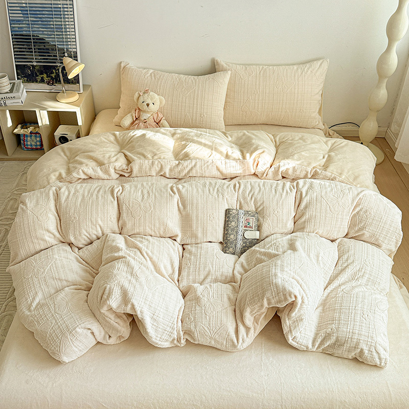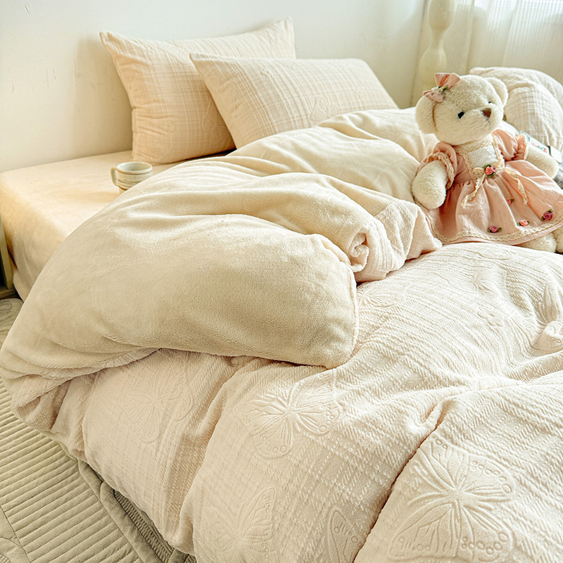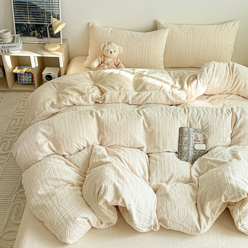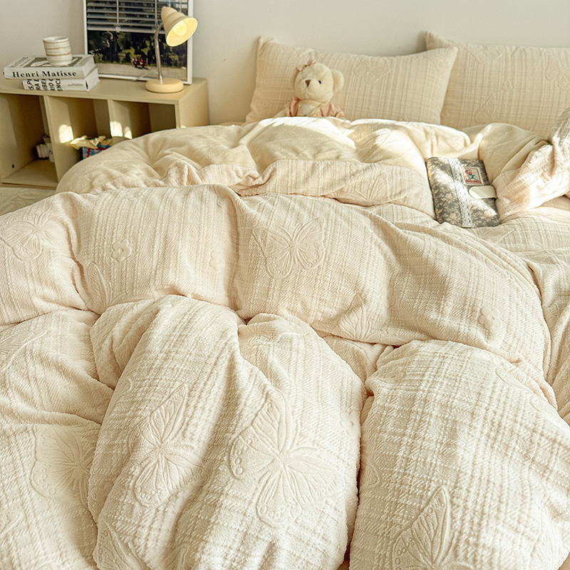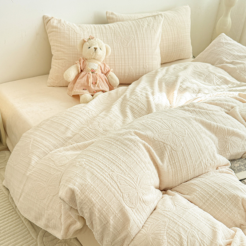 当前位置: 91家纺网 > 商品网购 > 床品套件 > 四件套 > 牛奶绒四件套 > 耀悦家纺 2025新款INS博主风田间梦蝶立体A类全消光雕花牛奶绒四件套 田间梦蝶-奶白