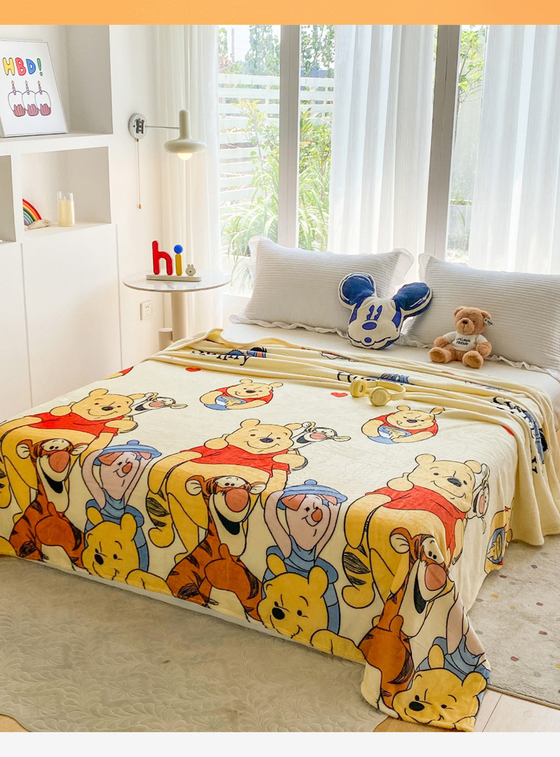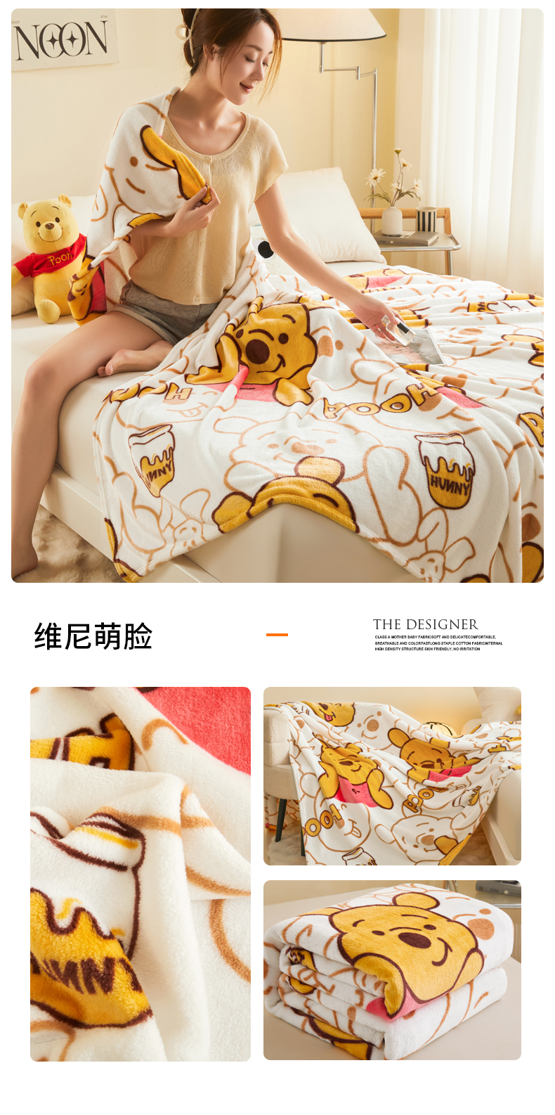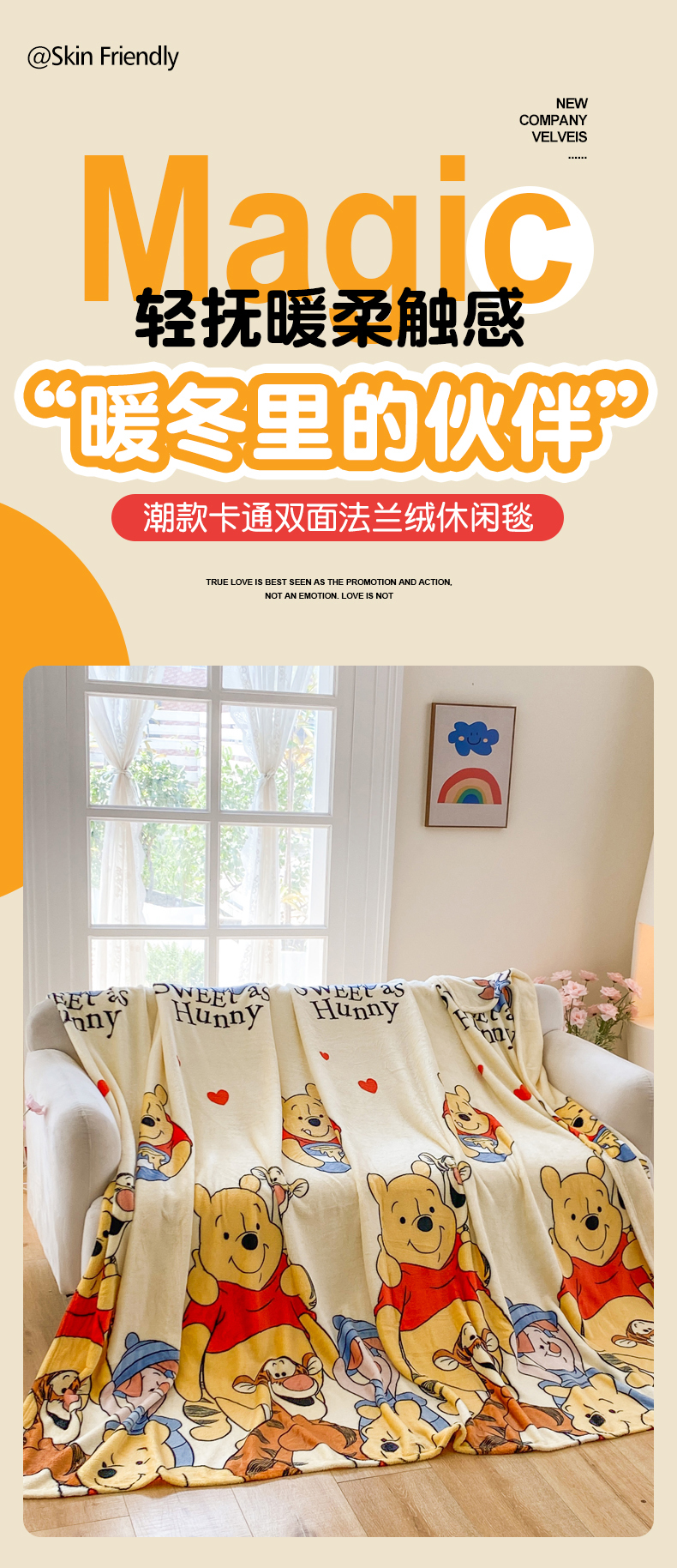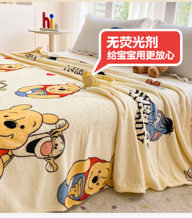 一电 2025新款卡通高克重双面法莱绒毛毯四季盖毯 维尼聚友
