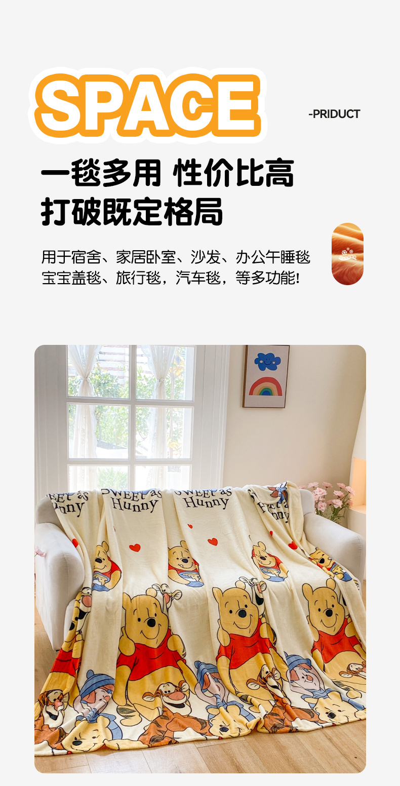 商品名称:一电 2025新款卡通高克重双面法莱绒毛毯四季盖毯 维尼聚友