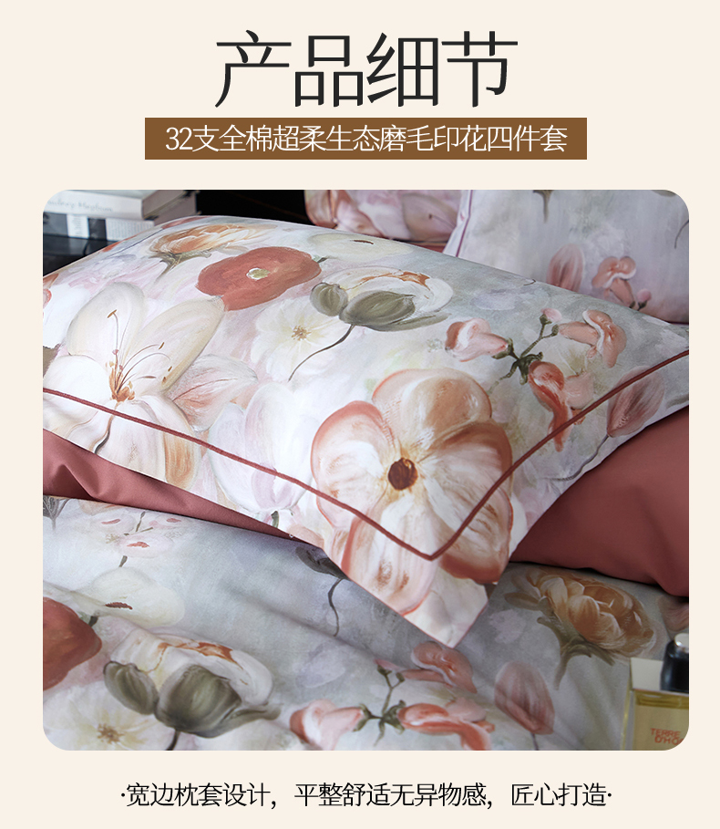 (总)品乐家纺 2025新款32支超柔生态磨毛四件套,川屿-咖,春意,朵唯-桔,朵唯-绿,花棠-粉,景秋-红,兰序-桔,兰茵-蓝,拾光-灰,桃汐-粉,桃汐-桔,小萌兔-绿,忆甜-米紫,郁郁幽兰-紫,鸢香-红,芷柔-粉