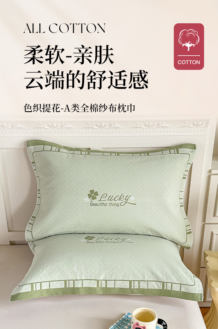 沐瑟家纺 2025新款馨梦枕巾 四叶草-绿 52x75cm枕巾一对