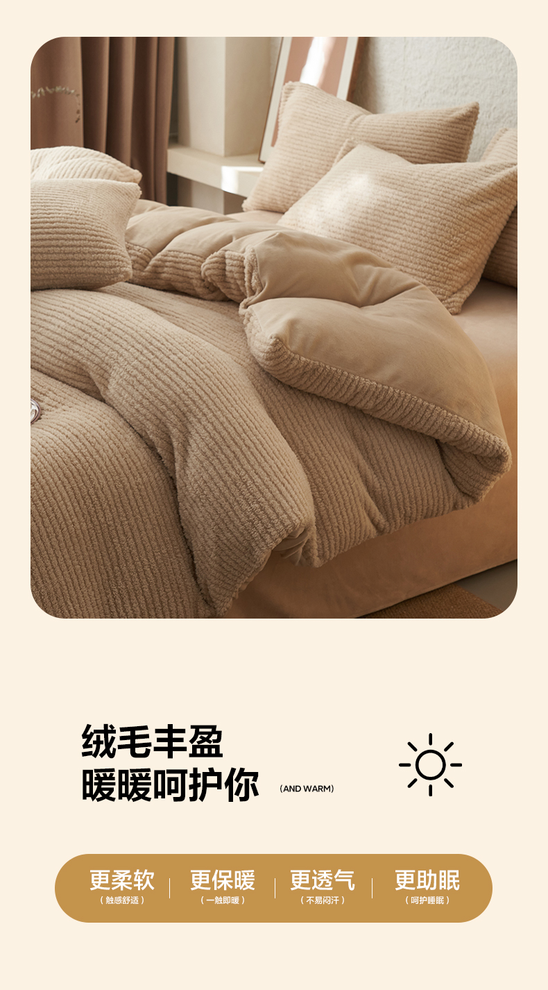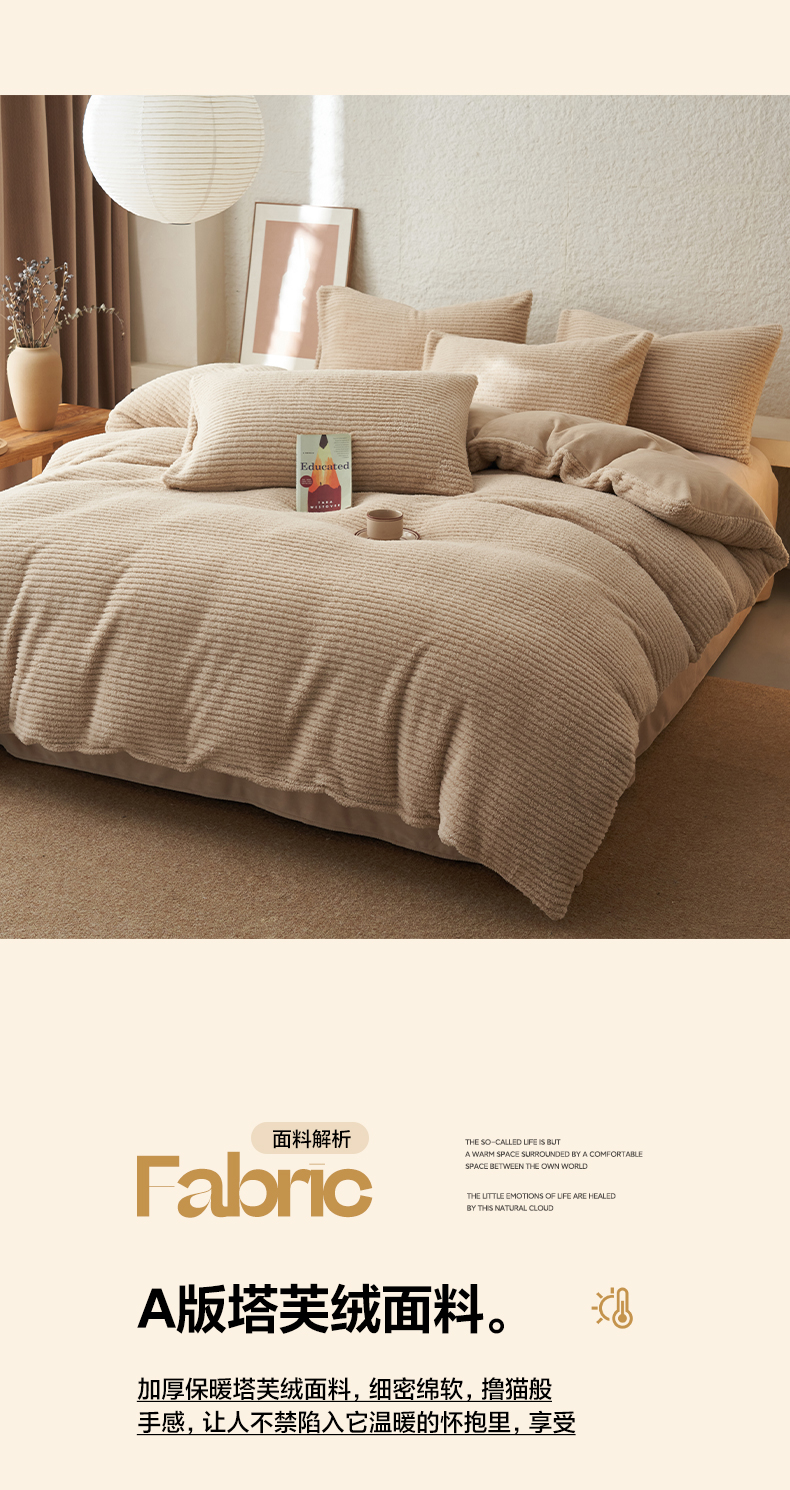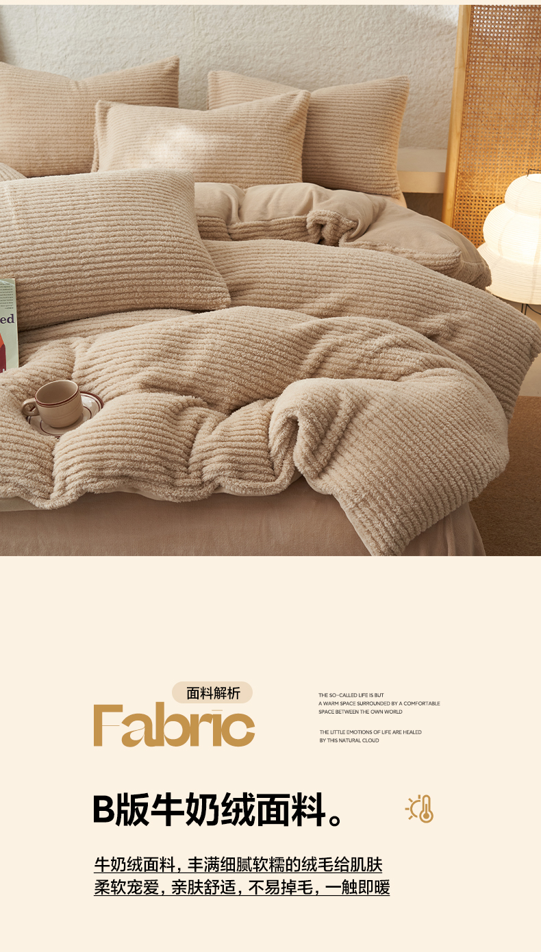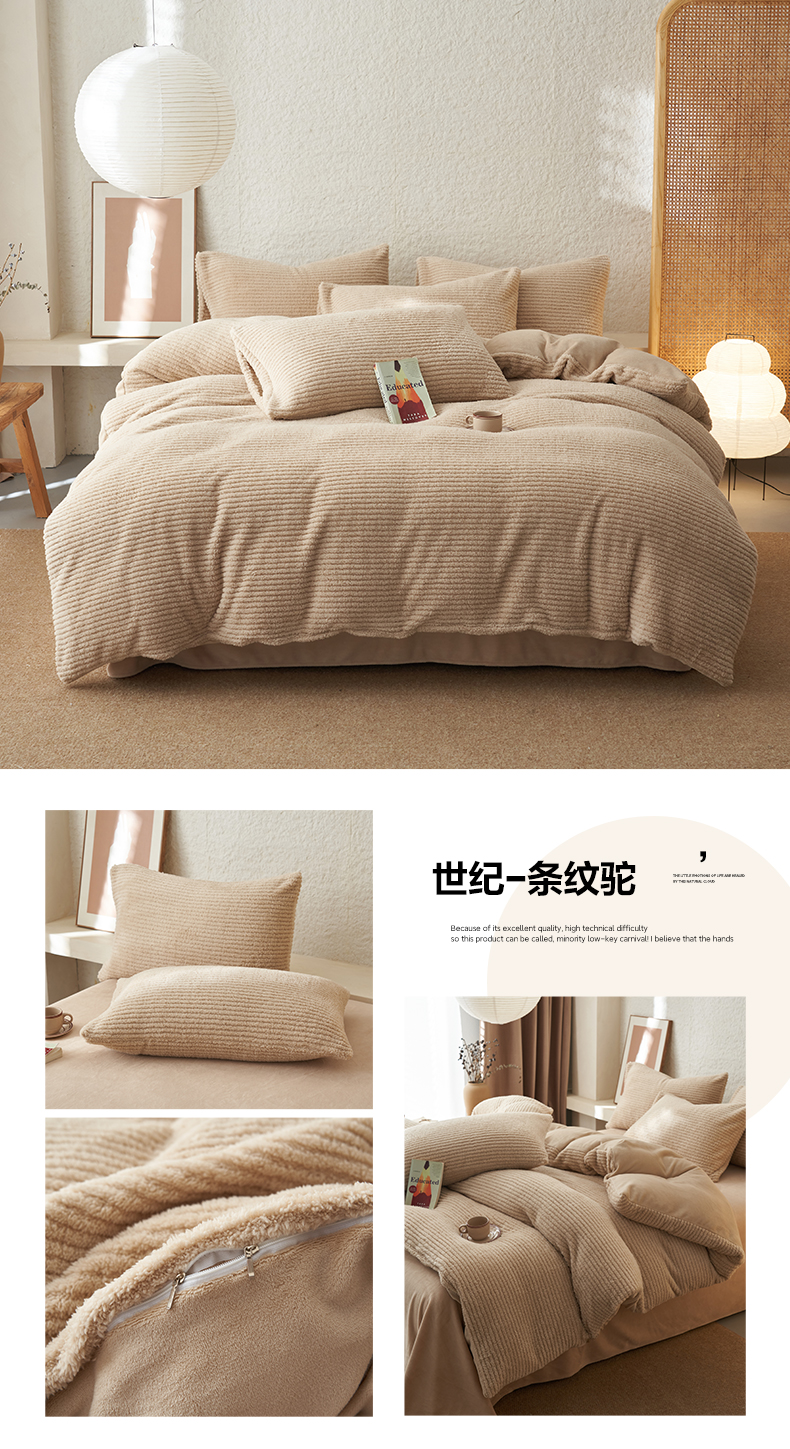 商品名称:早晨家纺 2025新款世纪款塔芙蓉牛奶绒四件套 世纪-条纹驼