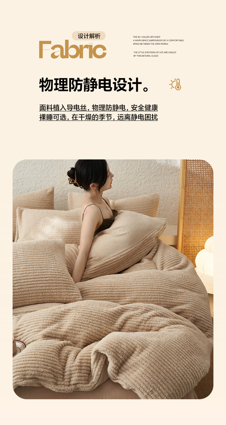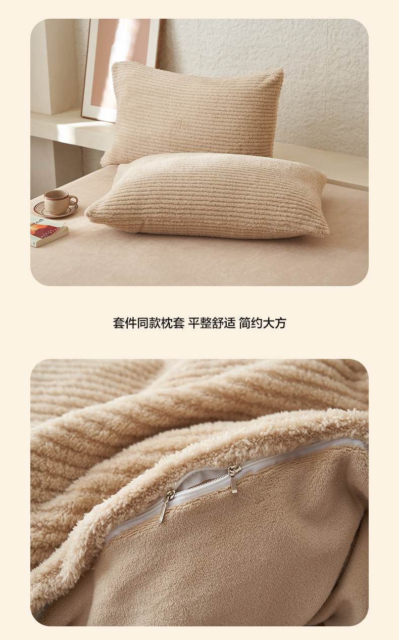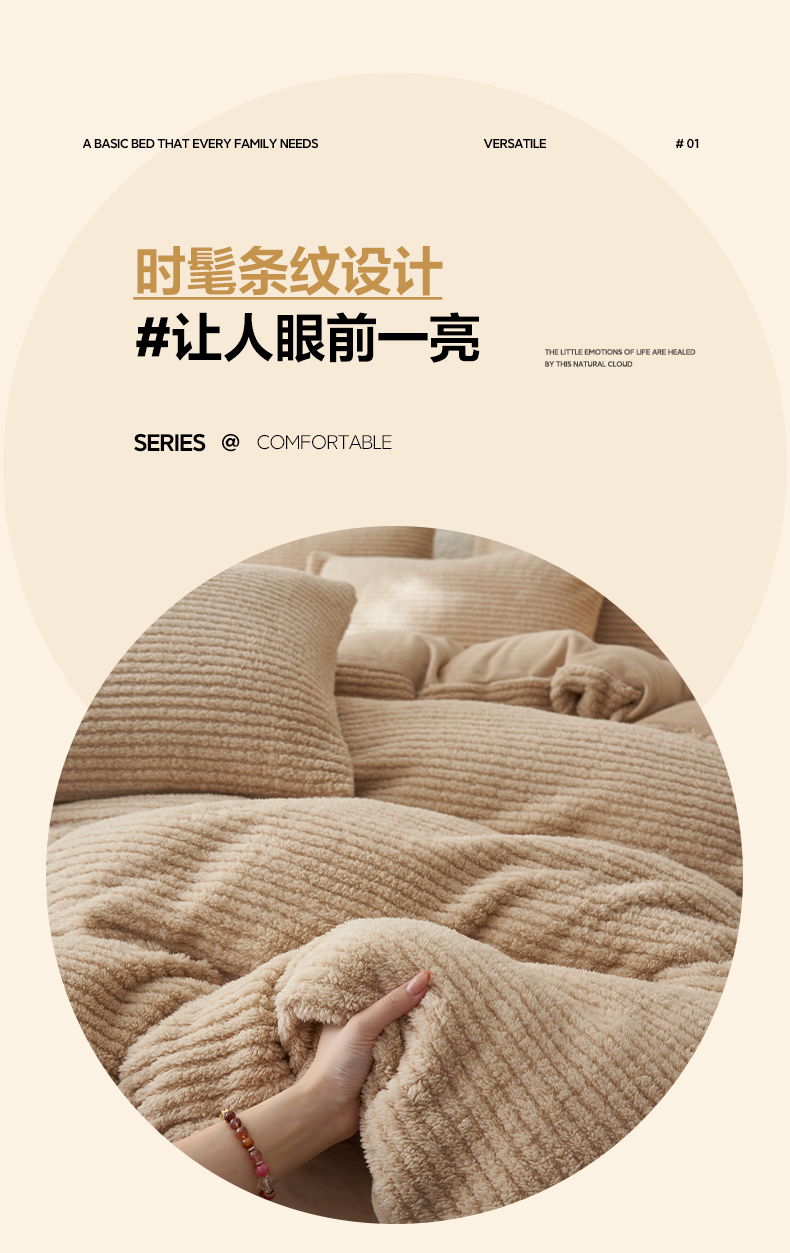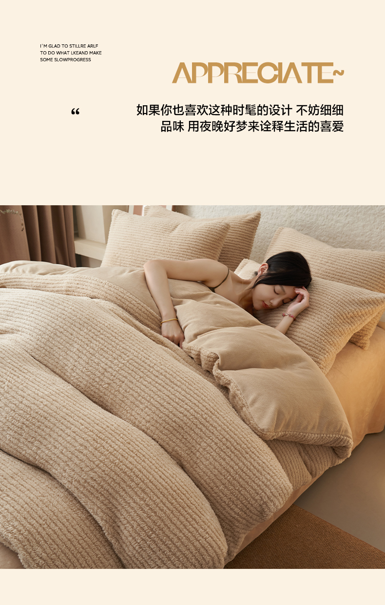 商品名称:早晨家纺 2025新款世纪款塔芙蓉牛奶绒四件套 世纪-条纹驼