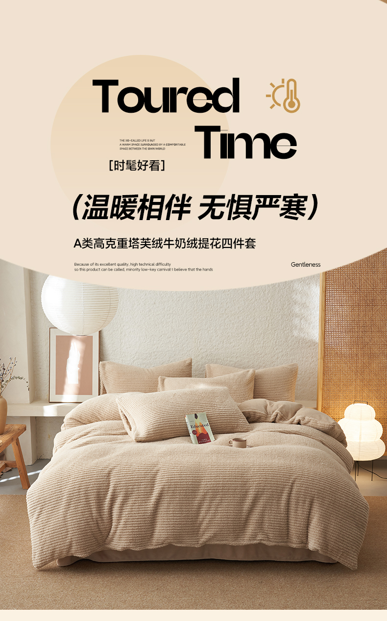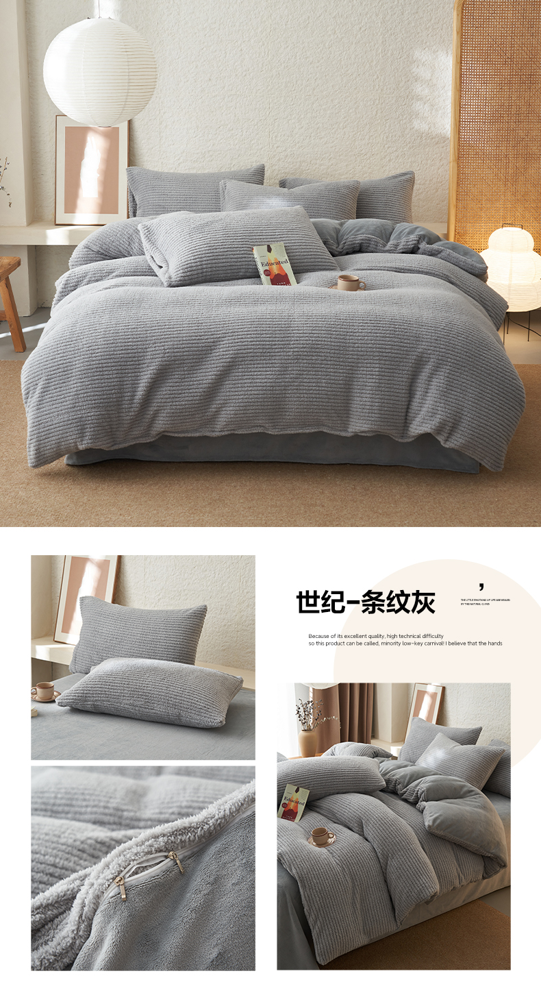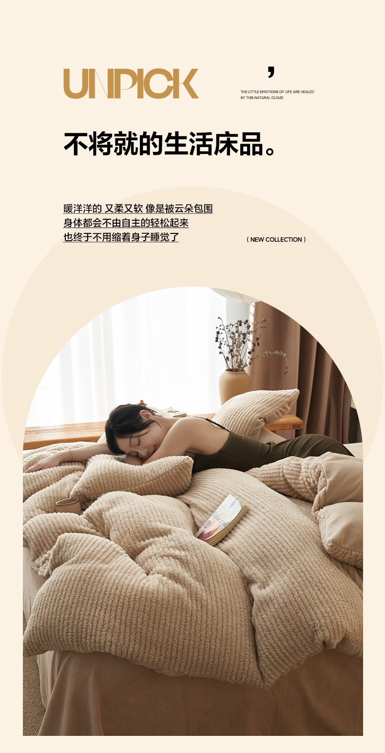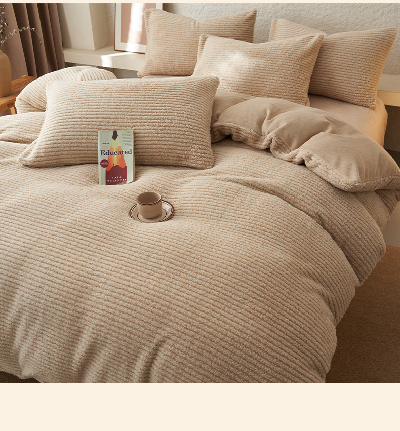 商品名称:早晨家纺 2025新款世纪款塔芙蓉牛奶绒四件套 世纪-条纹驼
