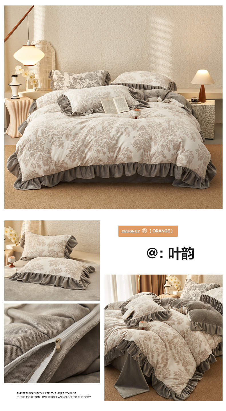 (总)早晨家纺 2025新款高克重牛奶绒烂花四件套,林影素韵,粉花眠,花眠灰,金叶漫,浅叙,圈语眠,素花漫庭,素纹,雅庭花叙,叶素,叶语灰,叶韵