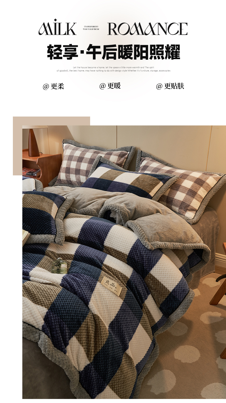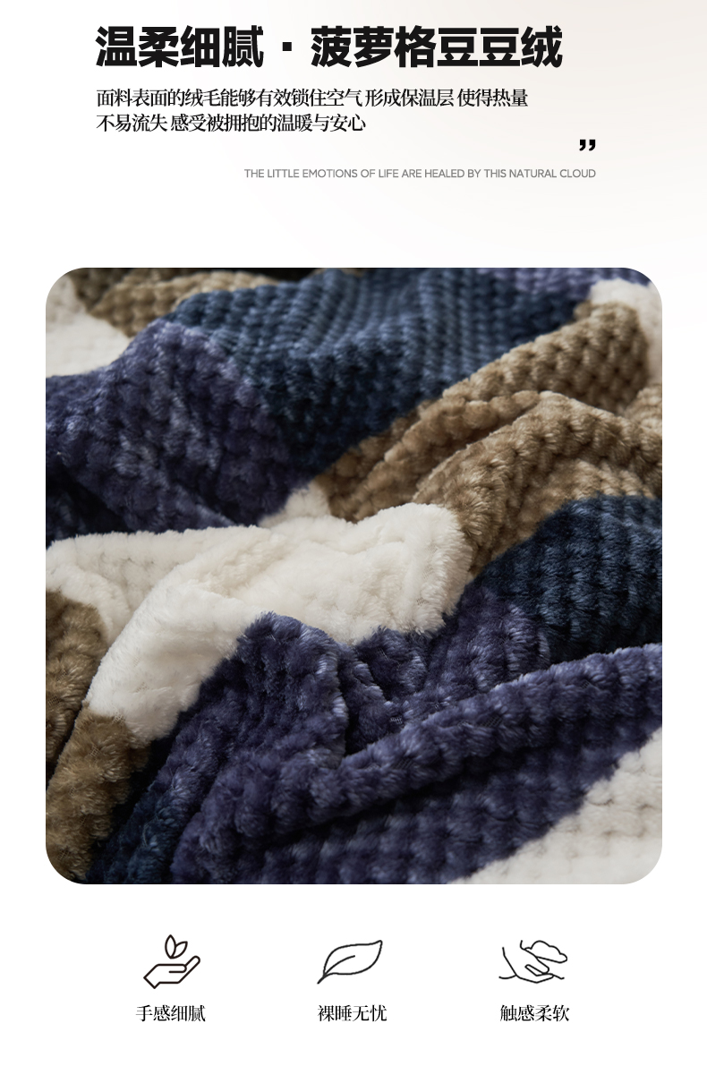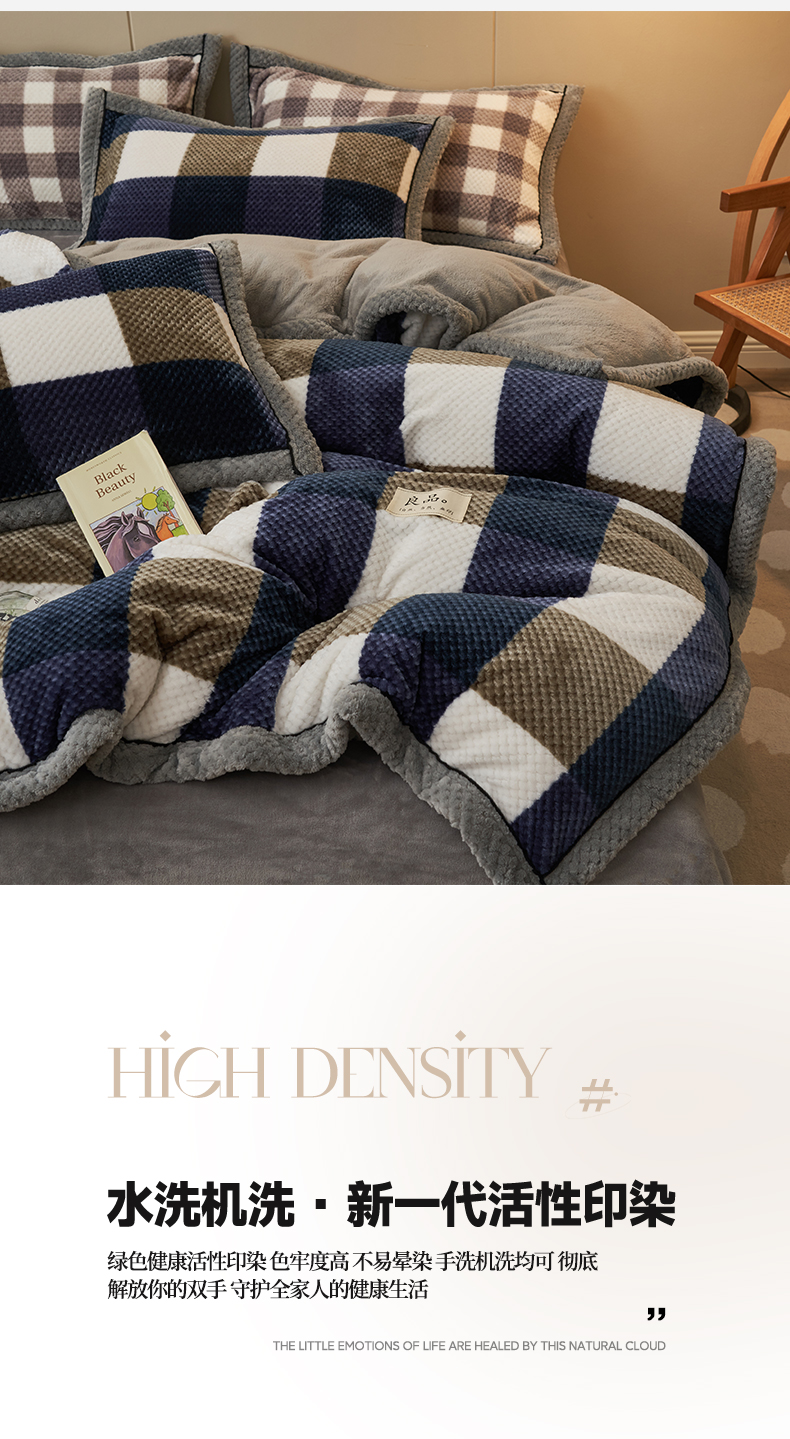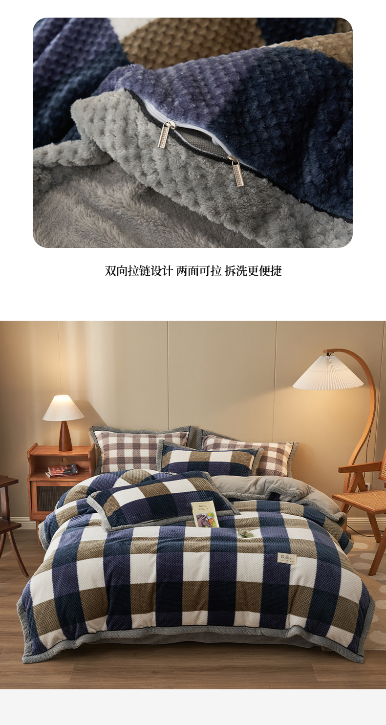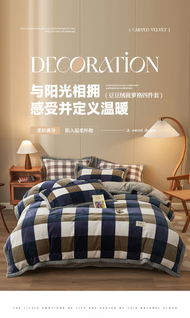 商品名称:早晨家纺 2025新款豆豆款菠萝格提花四件套 豆豆绒-大方格蓝