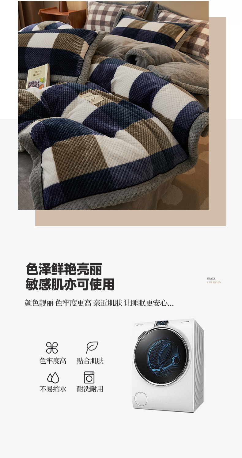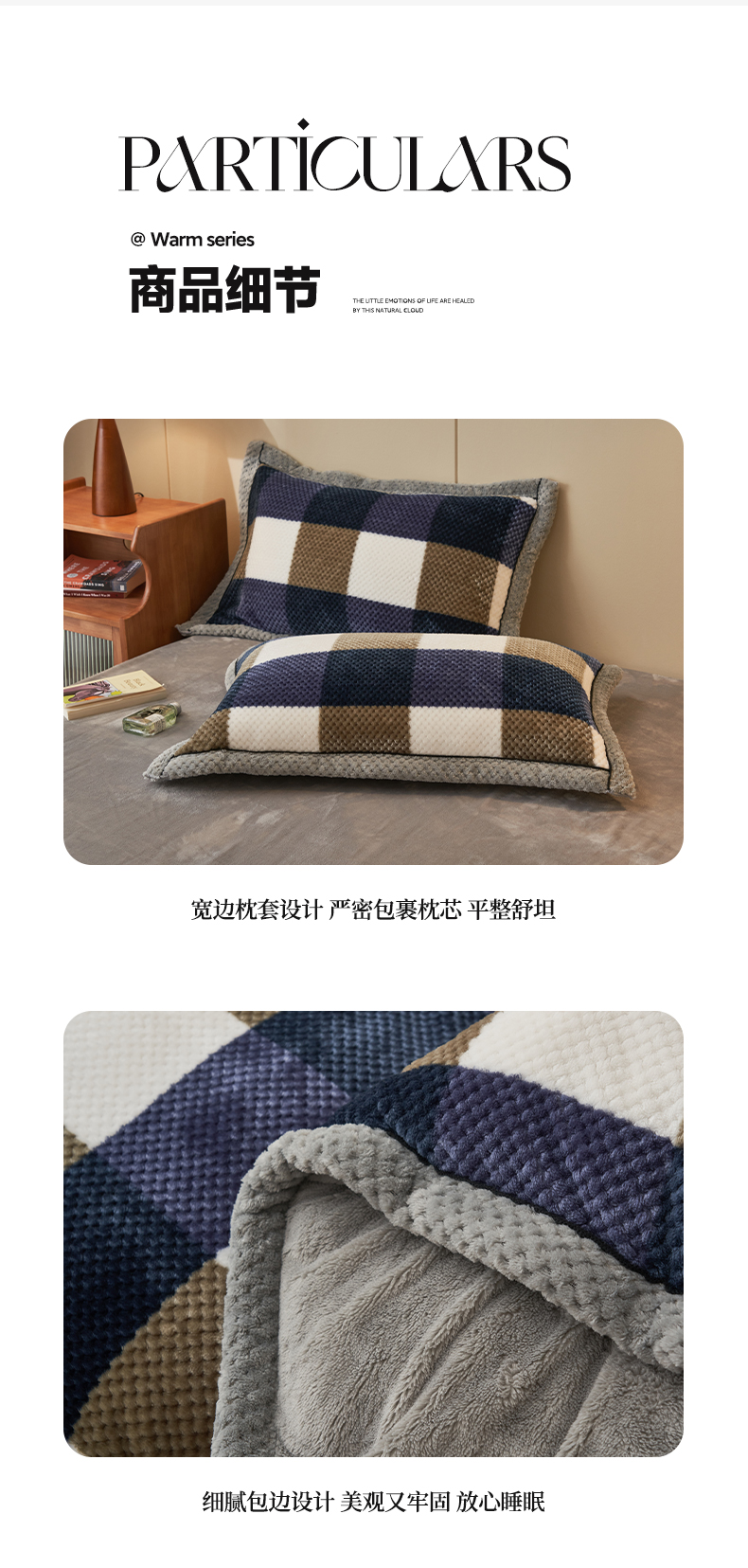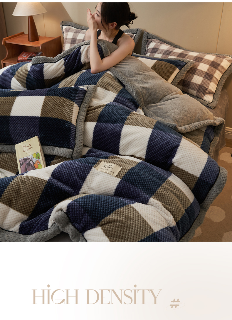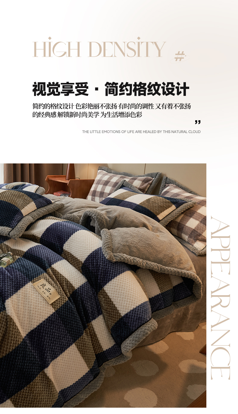 商品名称:早晨家纺 2025新款豆豆款菠萝格提花四件套 豆豆绒-大方格蓝