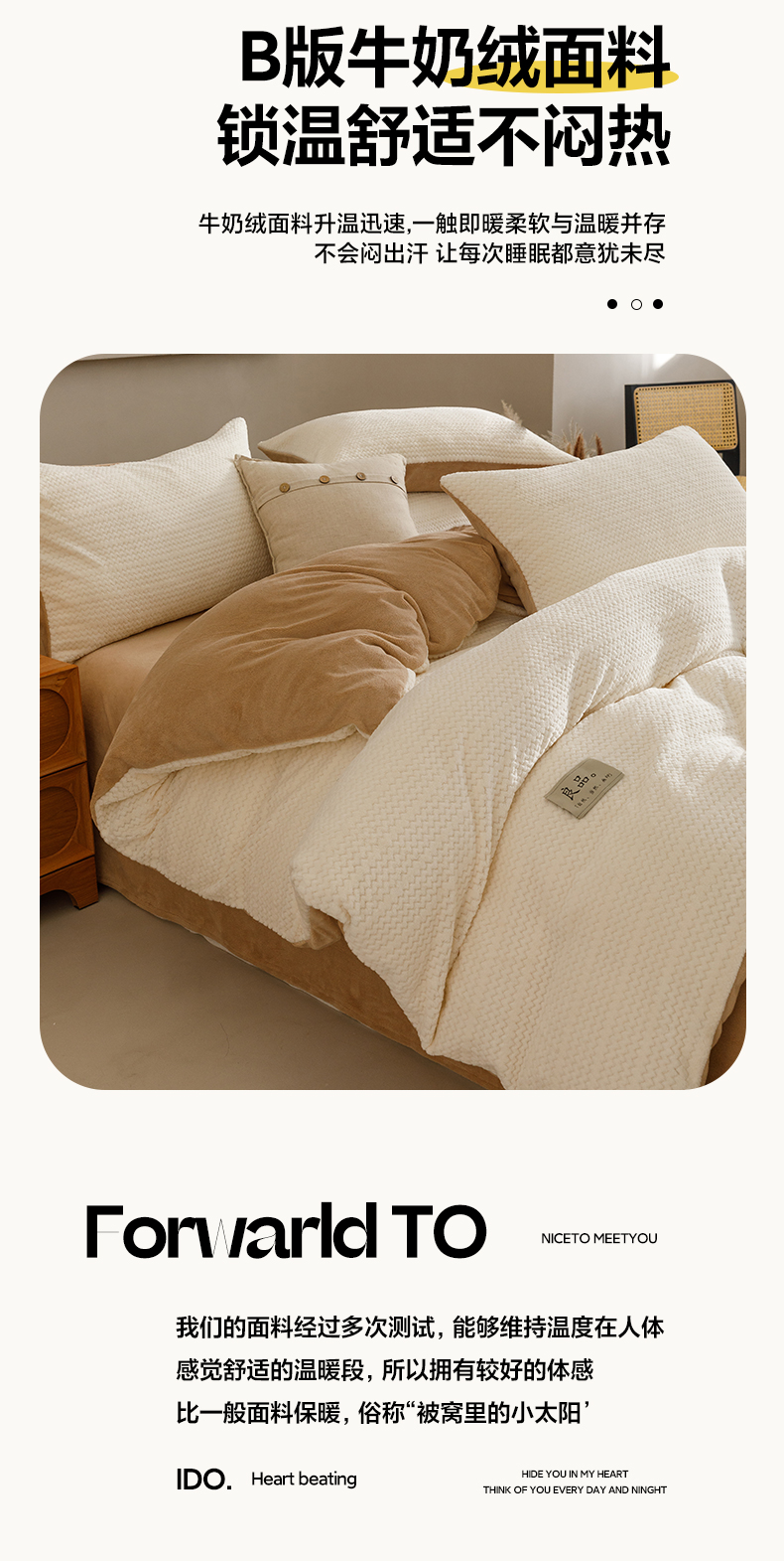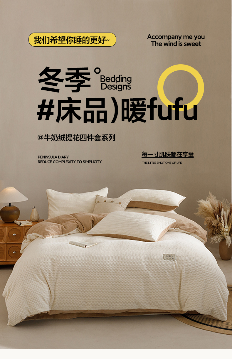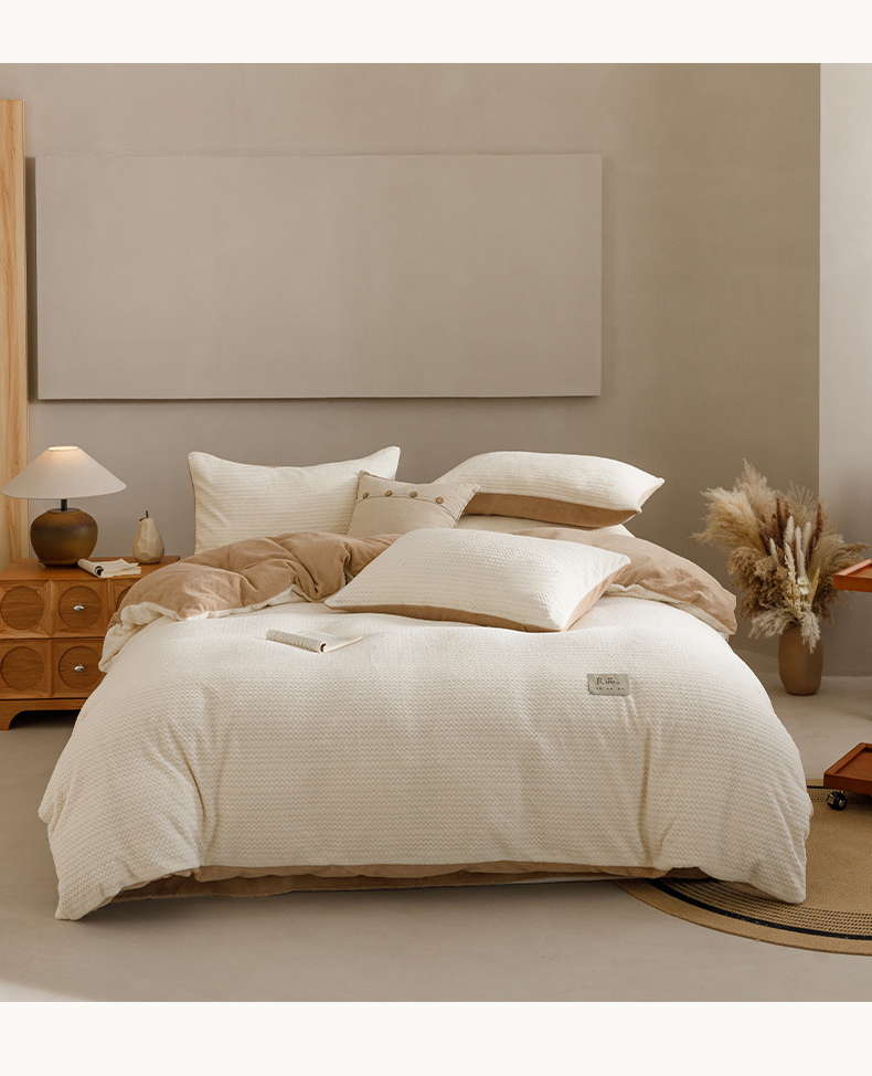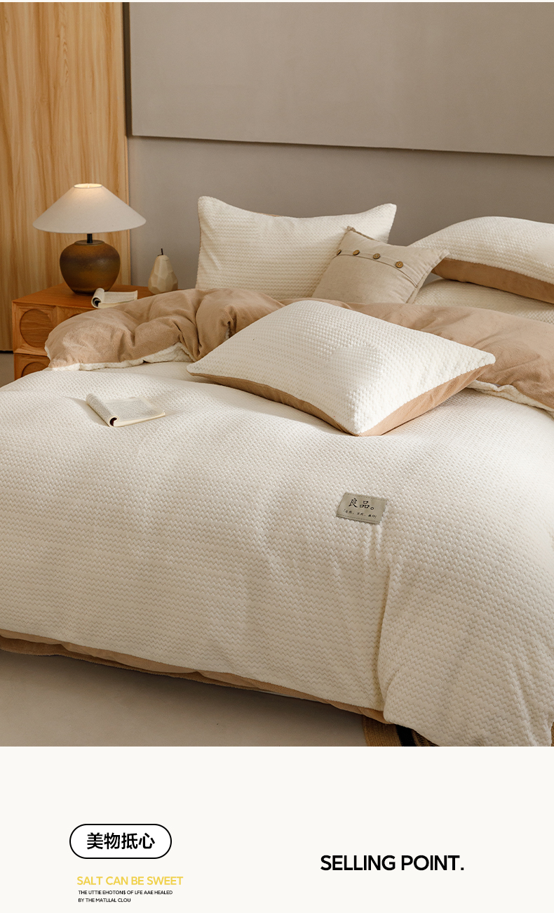 商品名称:早晨家纺 2025新款波浪款牛奶绒提花四件套 波浪-奶昔白