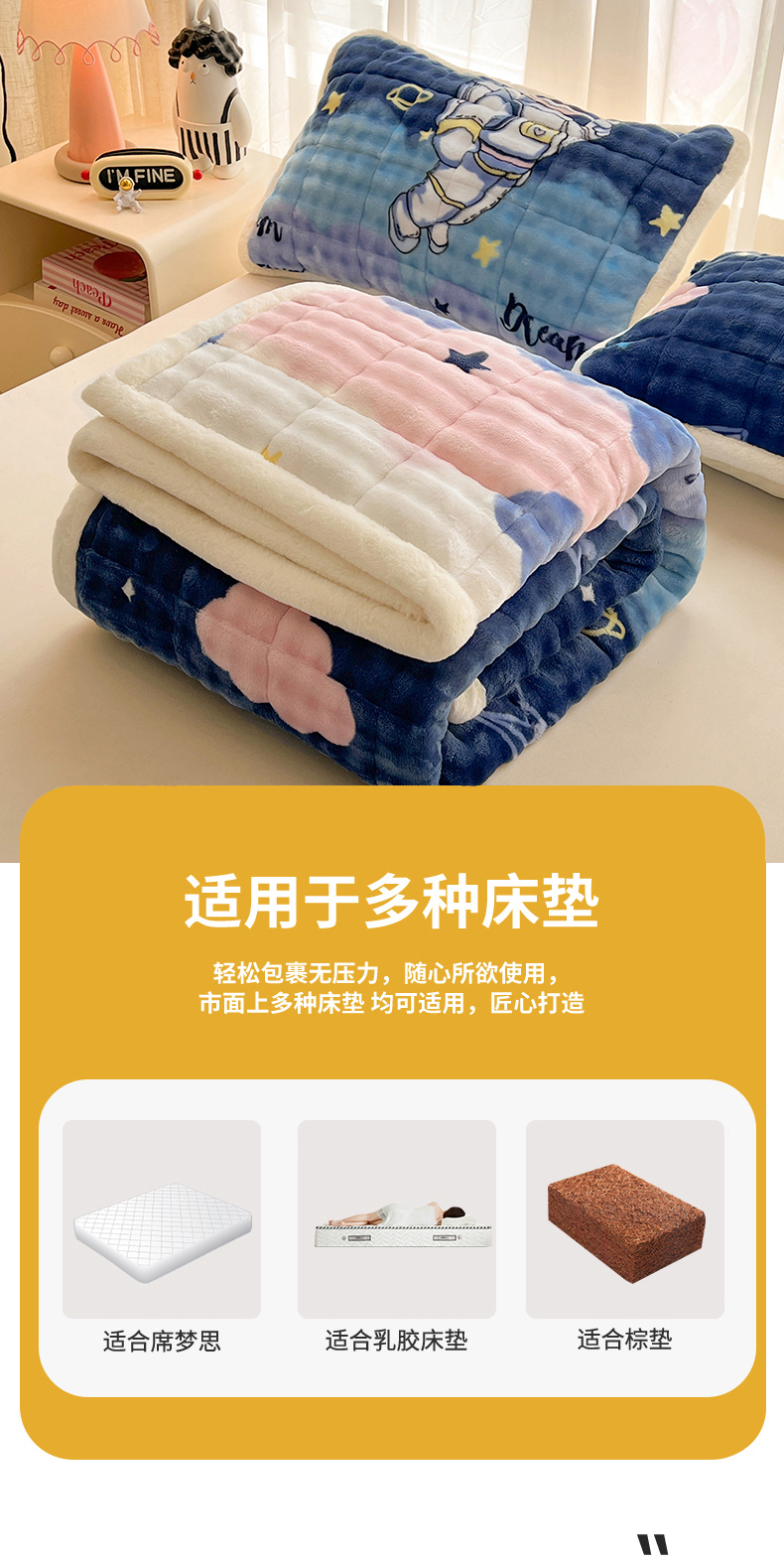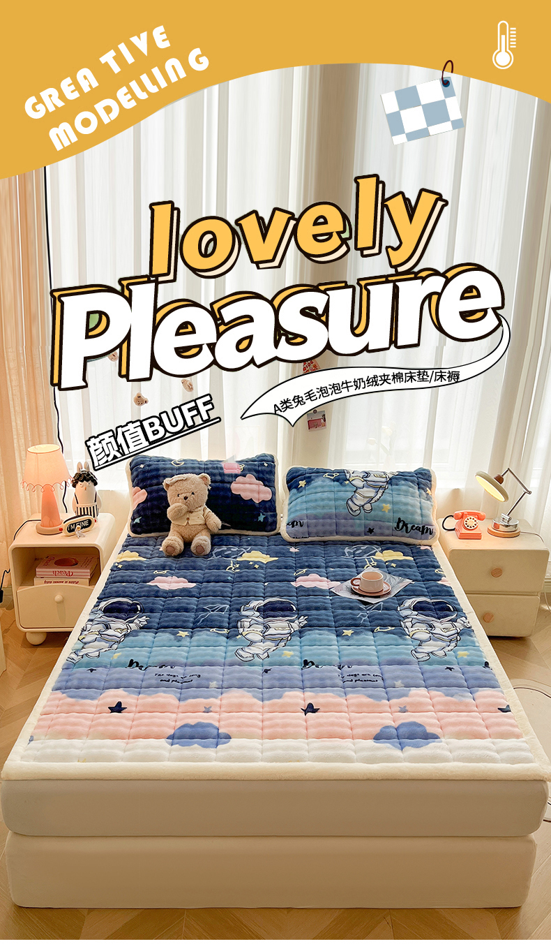 当前位置: 91家纺网 > 商品网购 > 床垫/床褥 > 梵朴 2025新款牛奶绒泡泡兔毛绒床垫学生宿舍床褥子床护垫大床款印花系列 梦幻太空人