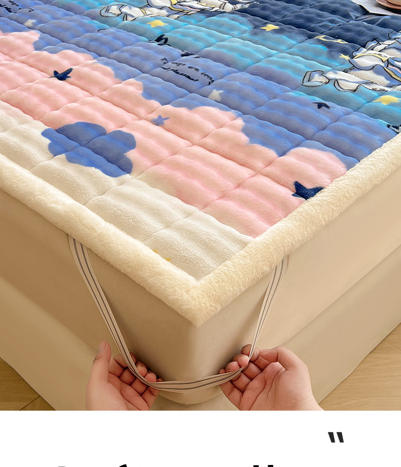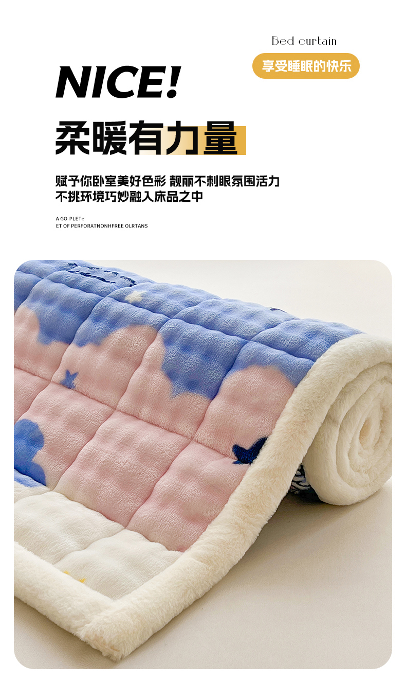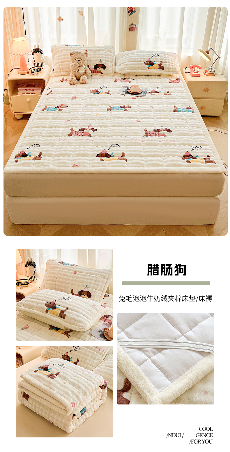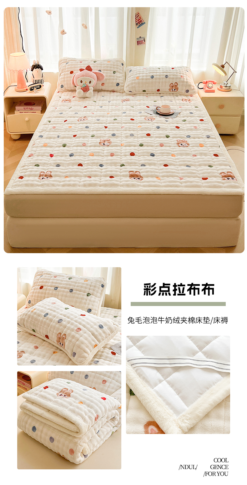 • 91家纺网 家纺一手货源 找家纺 (总)梵朴 2025新款牛奶绒泡泡兔毛绒床垫学生宿舍床褥子床护垫(大床款印花系列)-场景二,爱心蝴蝶结绿,彩虹爱心紫,彩虹哈皮狗,繁星,黄油小熊,咖底蛋糕熊,蕾丝蝴蝶结紫,梦幻太空人,趴趴熊,顽皮小熊猫,星黛露粉,星星小熊灰,音乐狗蓝--,云纹爱心粉