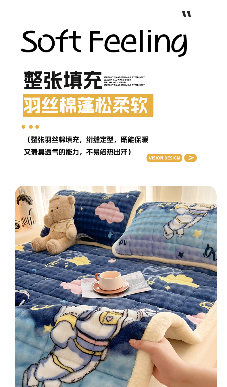 (总)梵朴 2025新款牛奶绒夹棉床垫床褥加厚珊瑚绒床护垫-印花系列(大床图),元气小熊,早安小狗,宇宙太空人,绿格熊猫,灰格熊猫,简约三角,开心奶狗,小熊派对,调皮熊猫,厨师长狗狗,彩虹小象,甜蜜小兔,三只布布,萌宠聚会,星星萌狗,费尔岛狗狗,彩点西高地,蛋糕兔,缤纷彩虹,爱心蝴蝶结蓝,波点南瓜,花漾年华,花园凯蒂,简约蝴蝶结,汪汪小队,星黛免兔