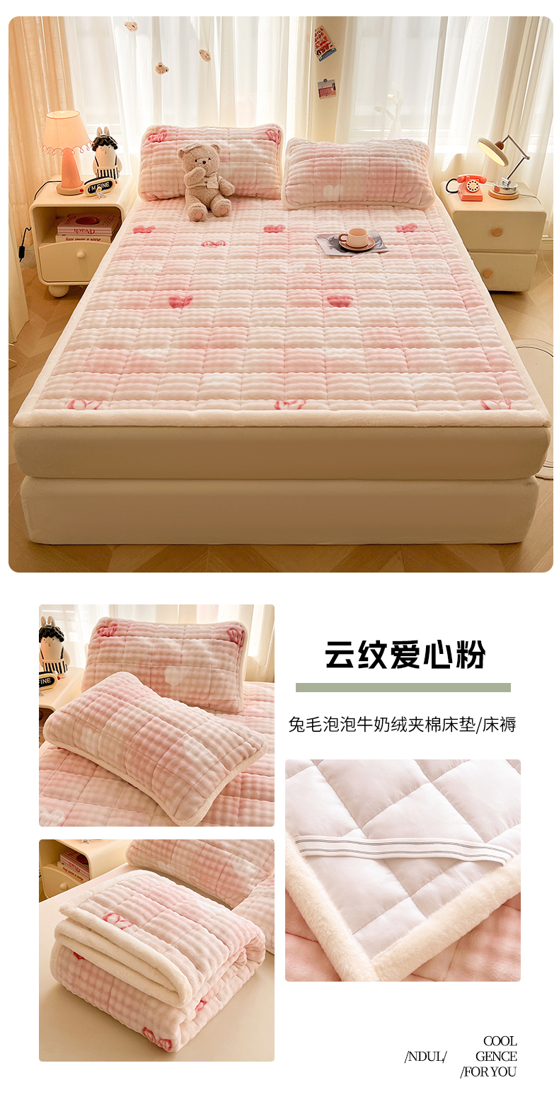 (总)梵朴 2025新款牛奶绒泡泡兔毛绒床垫学生宿舍床褥子床护垫(大床款印花系列)-场景二,爱心蝴蝶结绿,彩虹爱心紫,彩虹哈皮狗,繁星,黄油小熊,咖底蛋糕熊,蕾丝蝴蝶结紫,梦幻太空人,趴趴熊,顽皮小熊猫,星黛露粉,星星小熊灰,音乐狗蓝--,云纹爱心粉