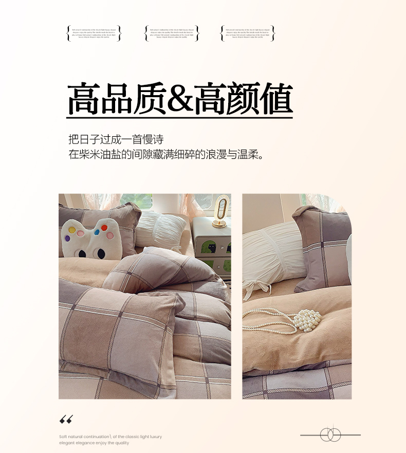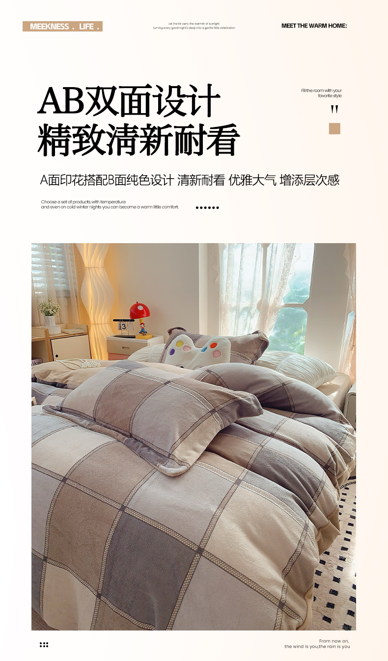 莱豫家纺 2025新款加厚牛奶绒三件套四件套保暖不静电 雅致格调