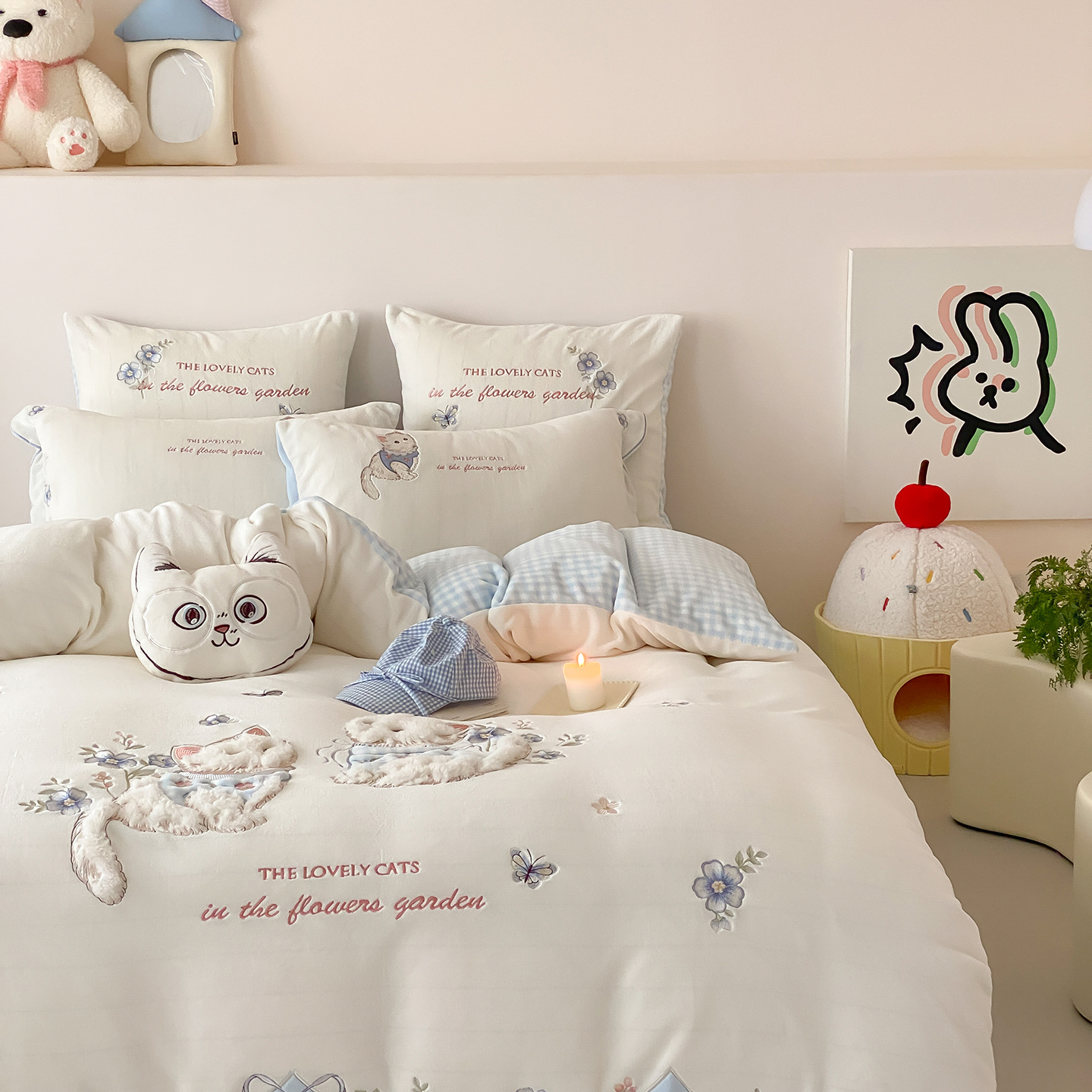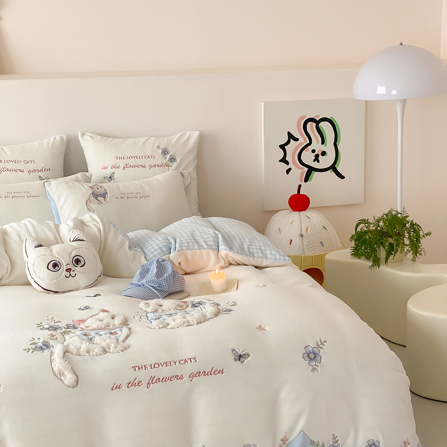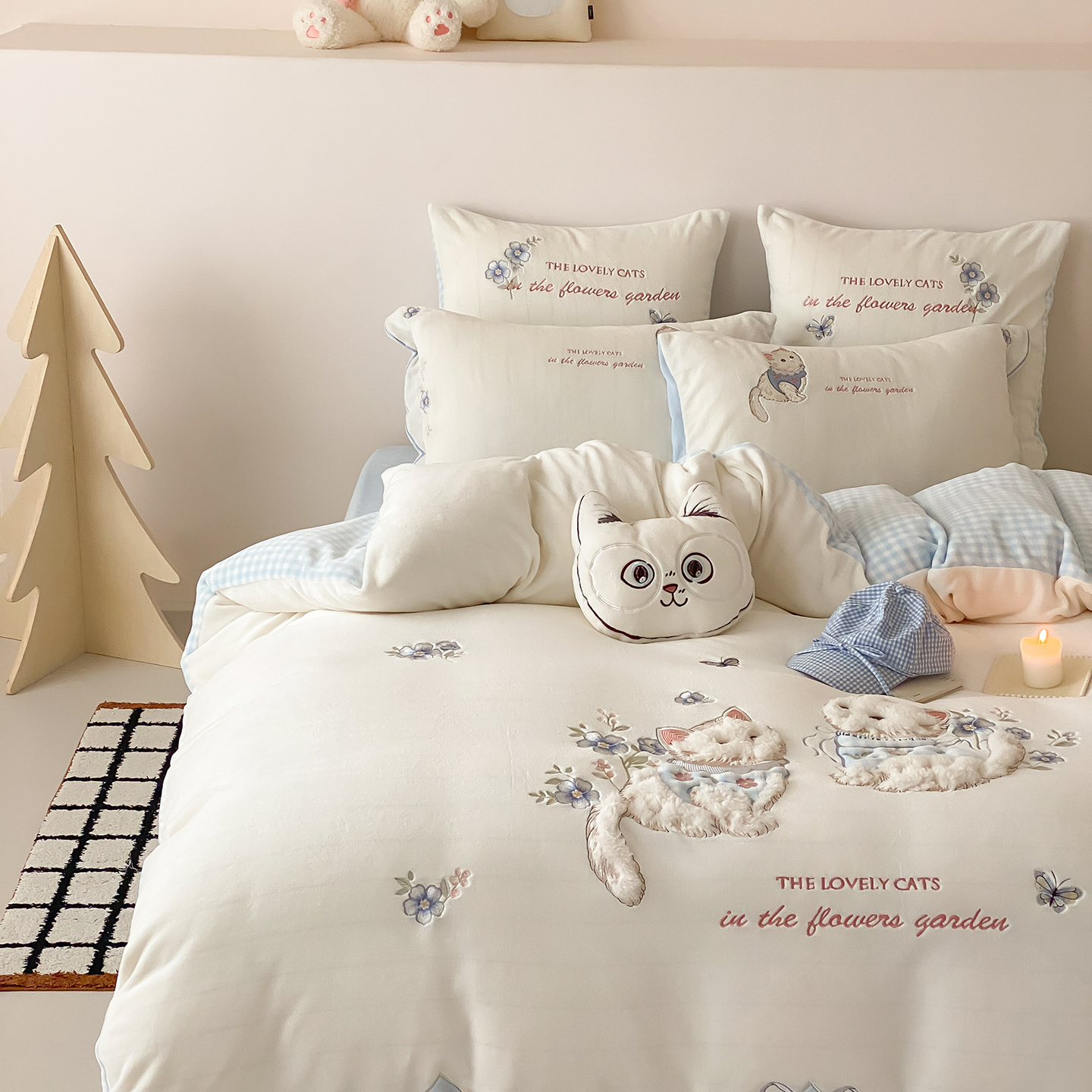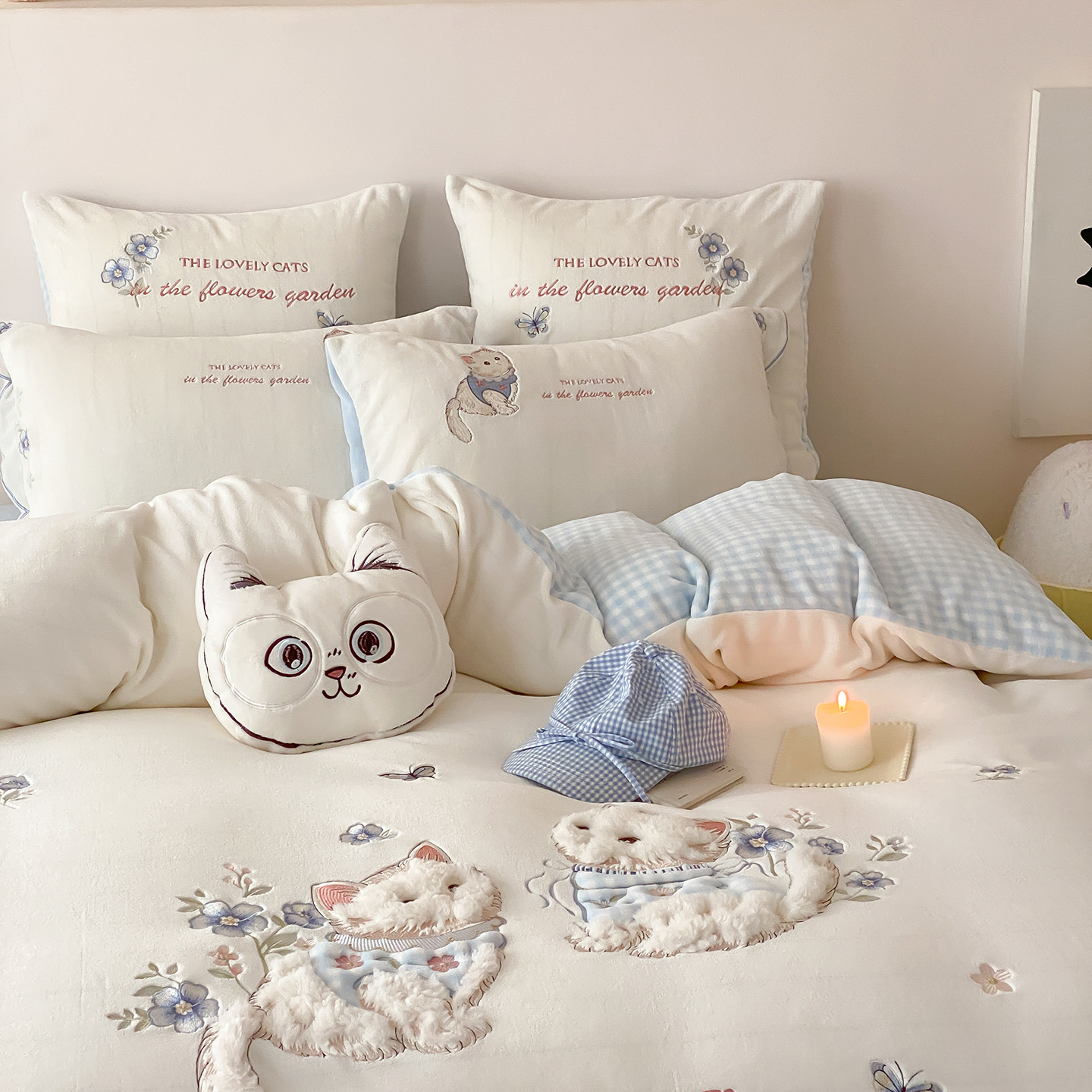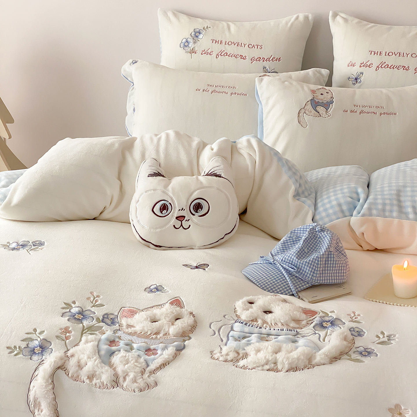 商品名称:(总)星野 2025新款高克重牛奶绒贴布刺绣四件套-喵花细语