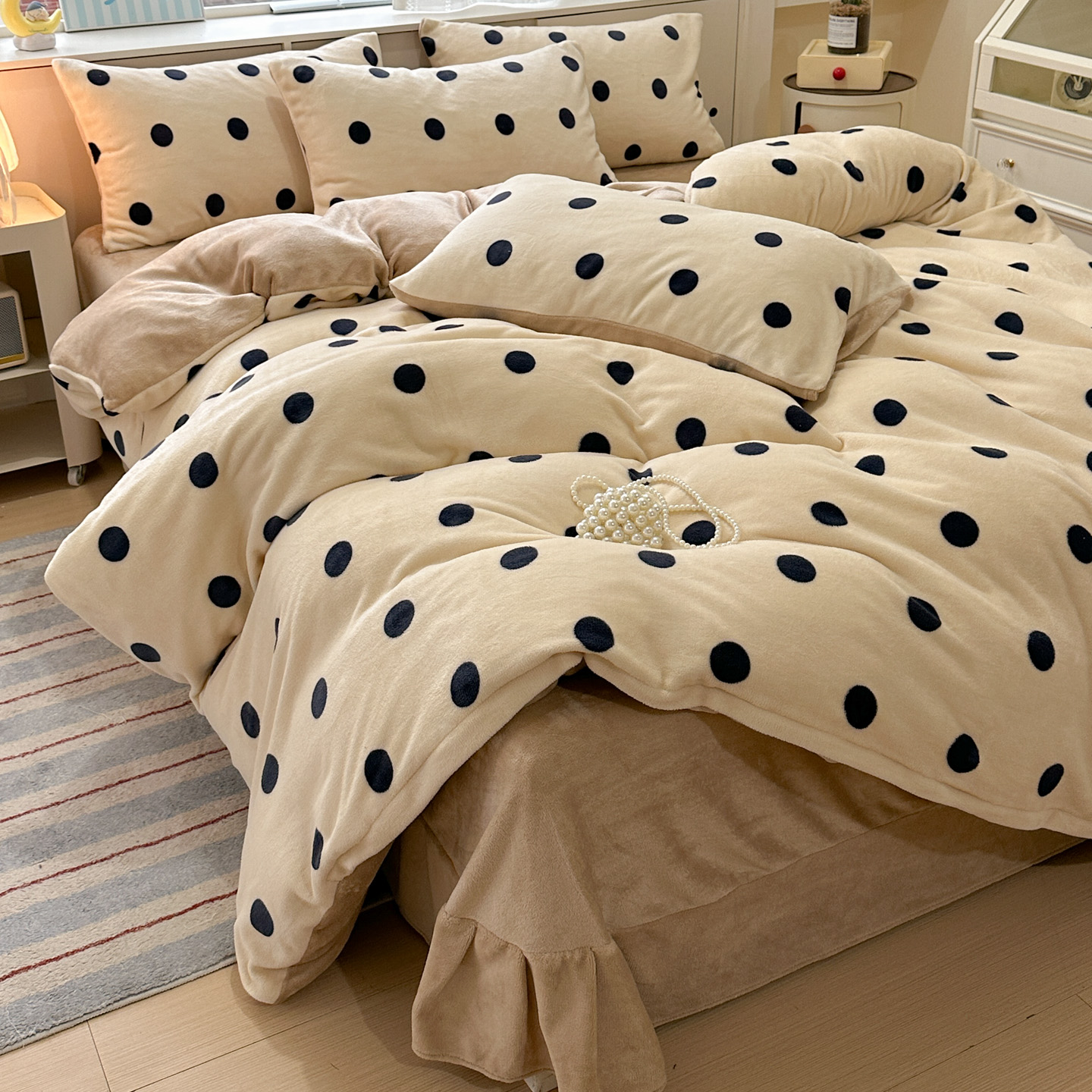 商品名称:梦莱斯 2025新款加厚保暖双面牛奶绒四件套 黑糖珍珠