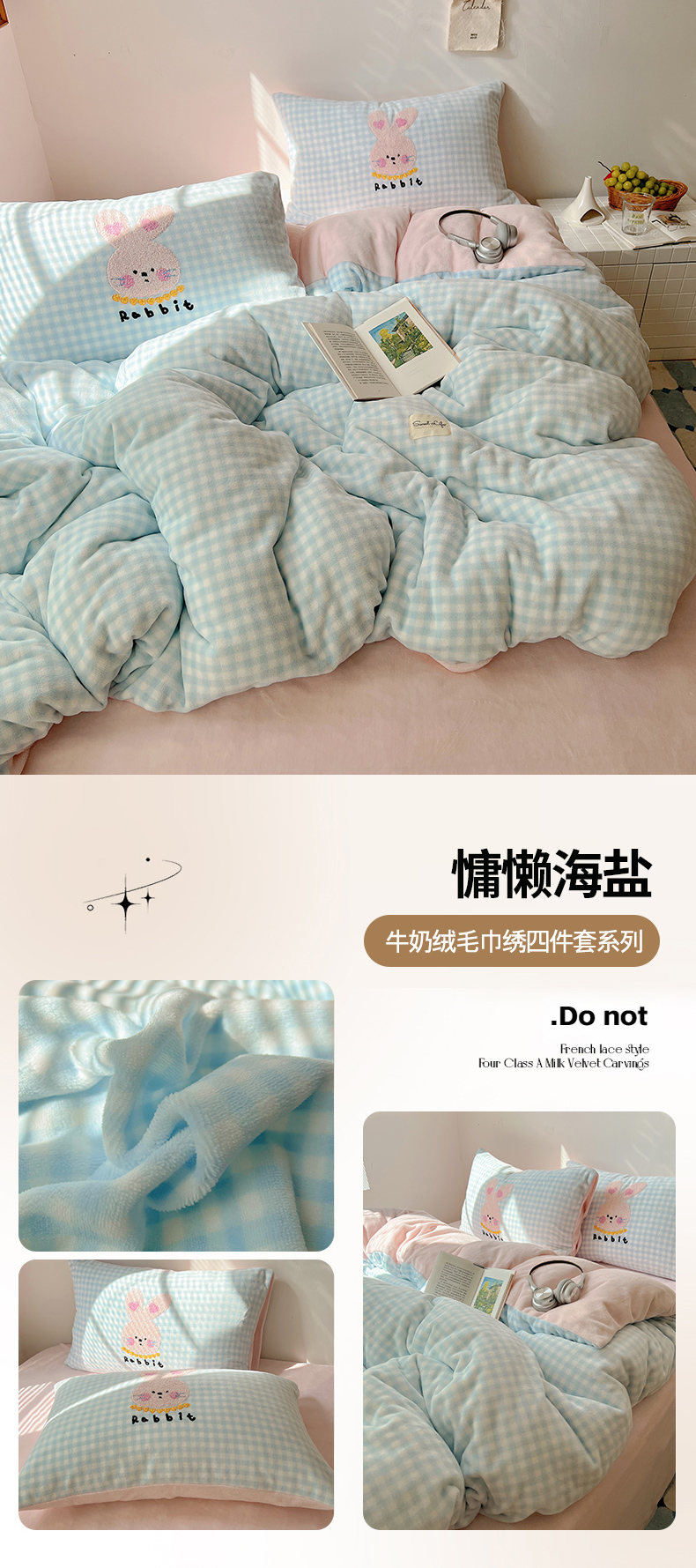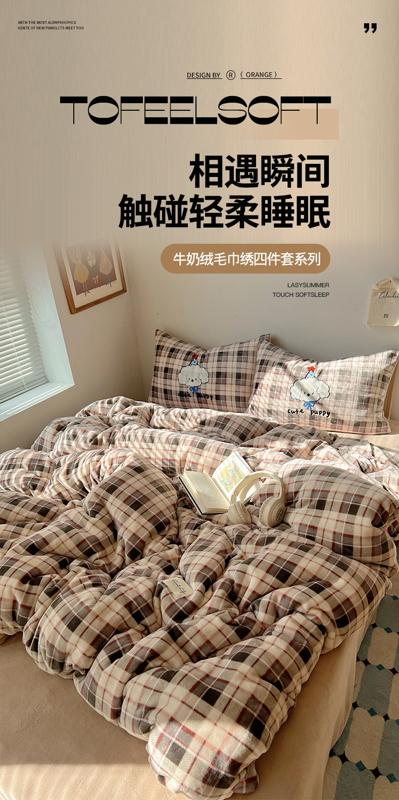 当前位置: 91家纺网 > 商品网购 > 床品套件 > 四件套 > 牛奶绒四件套 > 轻奢坊 2025新款牛奶绒慵懒格子可爱毛巾绣四件套系列 慵懒胭红