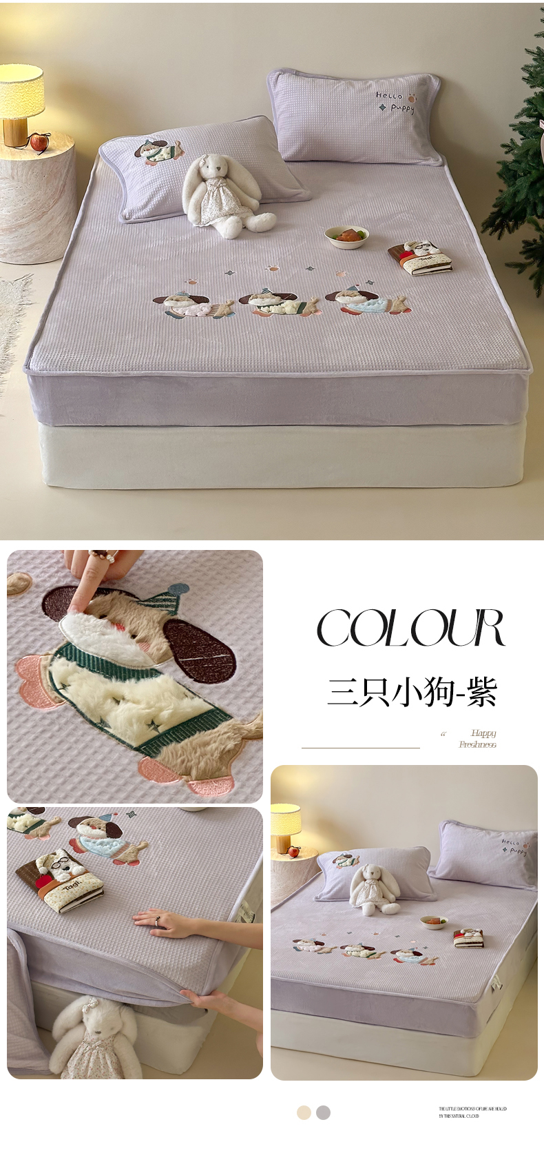 (总)Sweet dreams甜梦 2025新款高克重牛奶绒印花夹棉床笠圣诞款,冬日小猫粉,糖豆,雪人奇趣园
