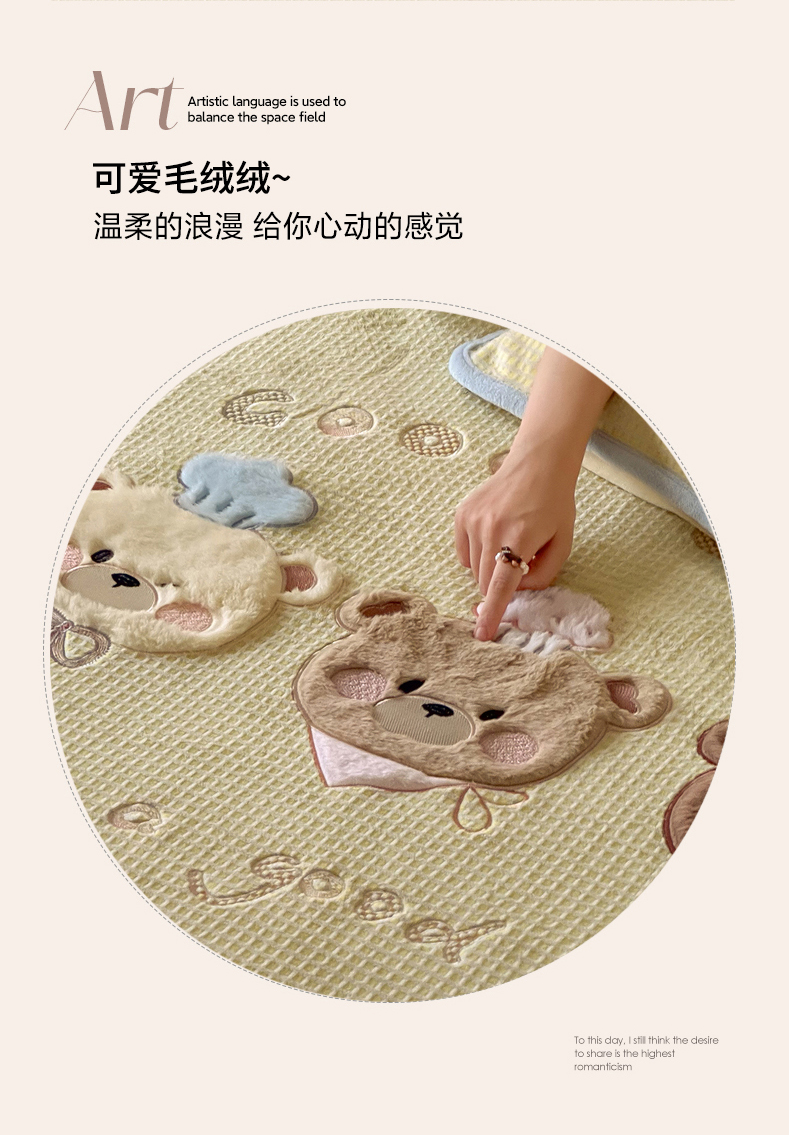 商品名称:Sweet dreams甜梦 2025新款华夫格绒兔毛贴布床笠三件套 小动物黄