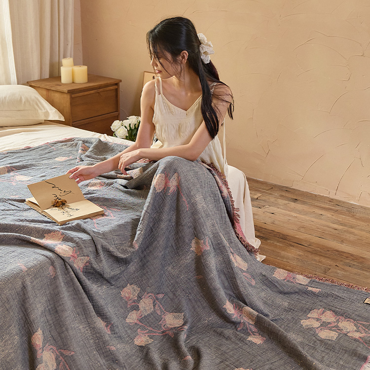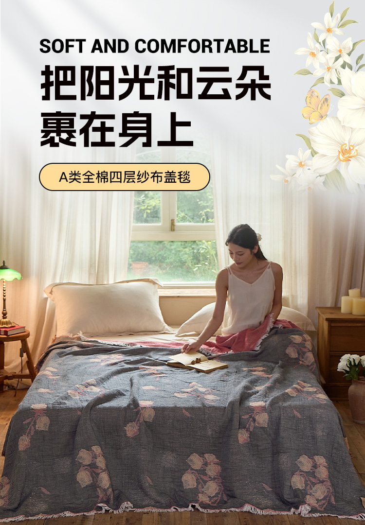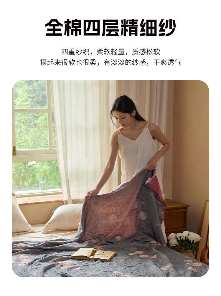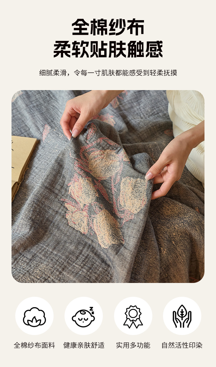 (总)沐瑟家纺 2025新款亲肤柔软全棉纱布中国风盖毯毯子,百花集,翠影鸟-蓝色,花想容,花鸟韵,蝶语-绿,蝶语-淡粉,花蝶-米,比翼鸟,墨葵,绮梦花