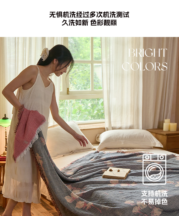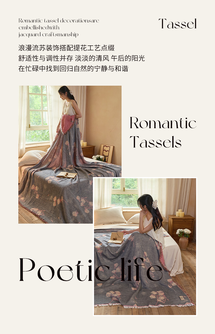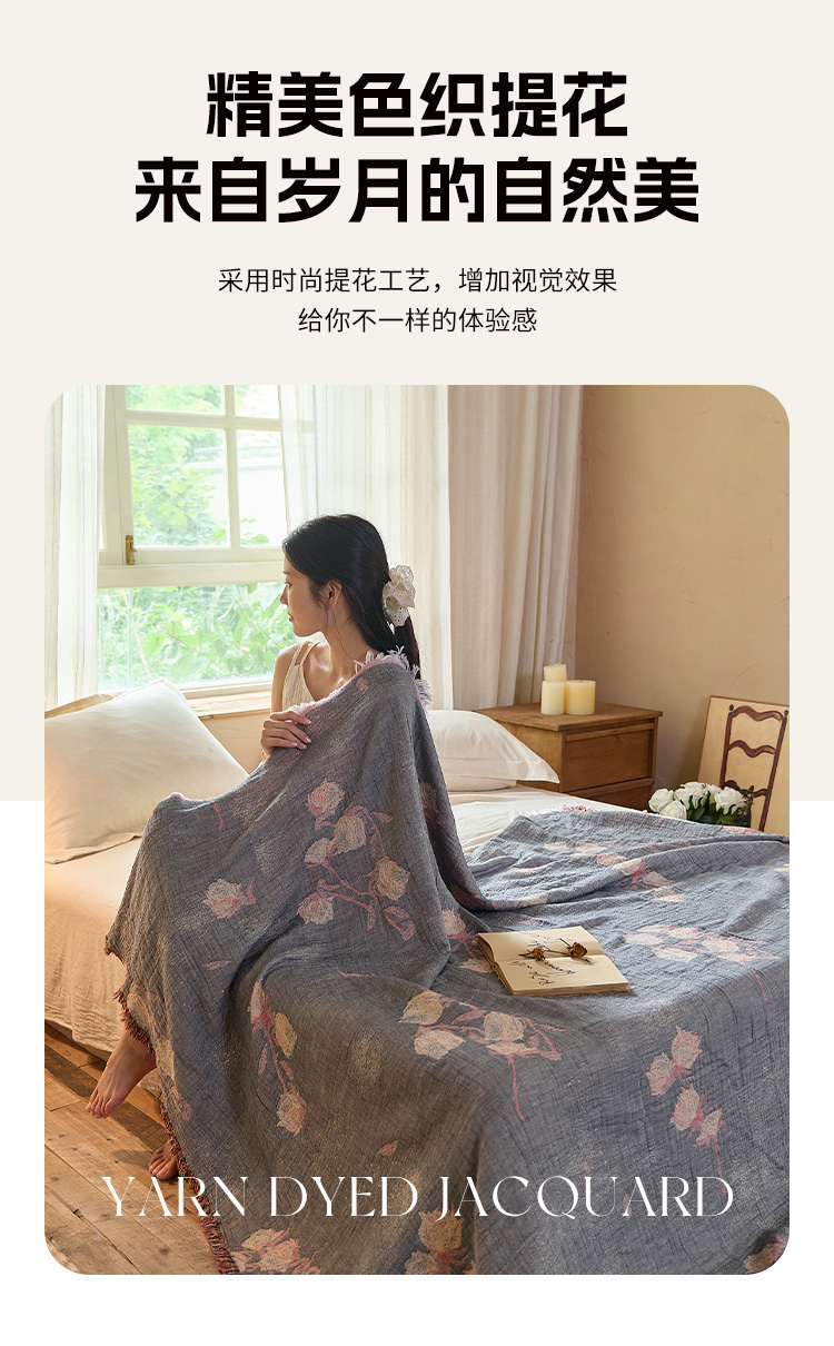商品名称:沐瑟家纺 2025新款四层纱布全棉流苏毯子纱布床盖毛巾被纯棉棉纱夏凉被午睡盖毯 亦玫