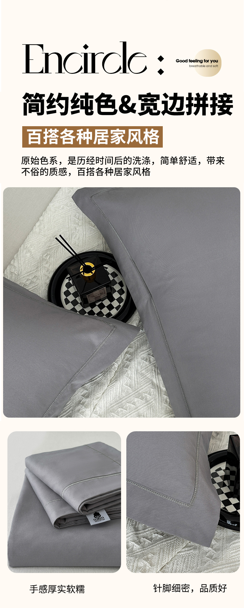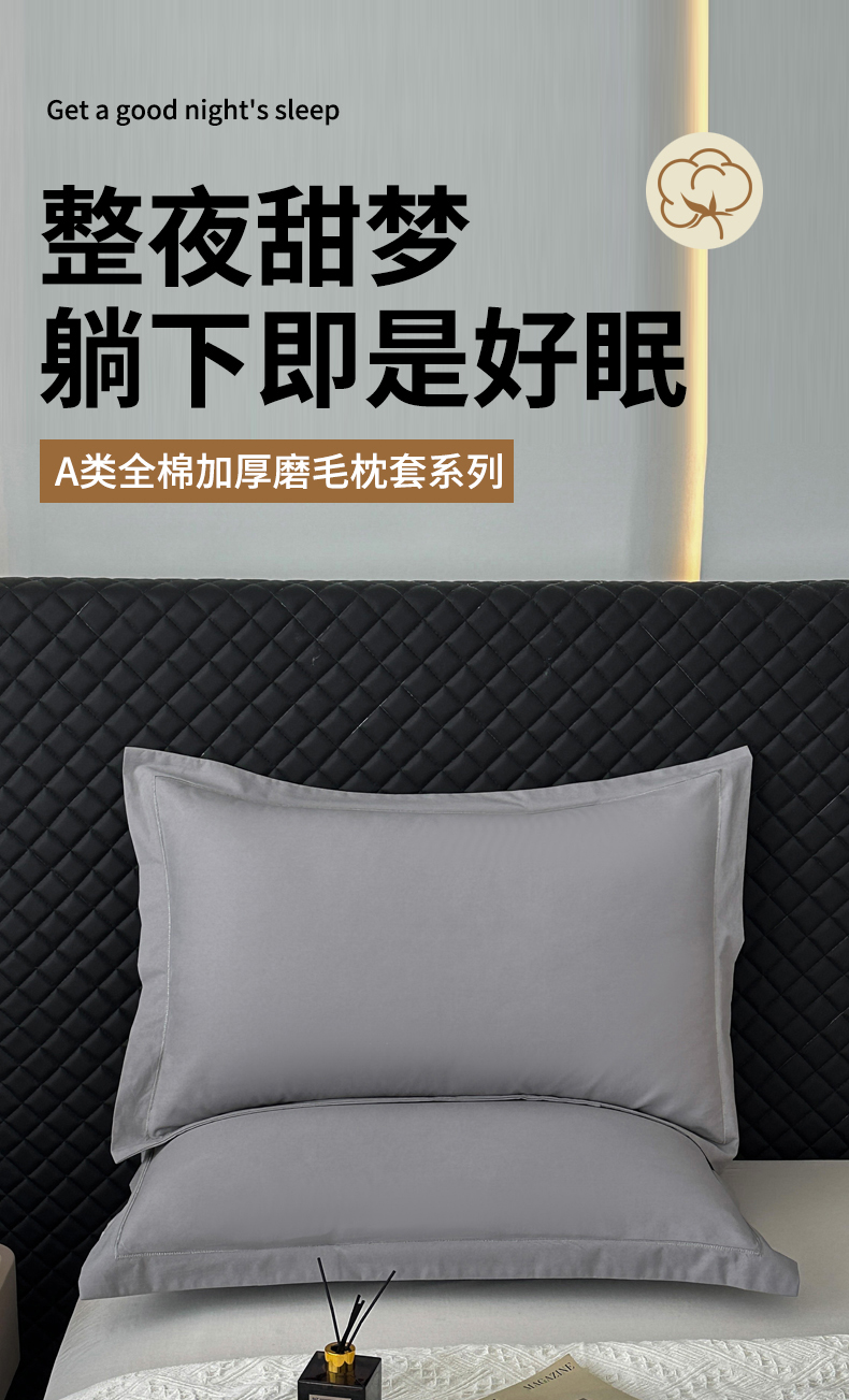 商品名称:宝时兰 2025新款加厚100%全棉枕套单品磨毛纯棉单件(带一字绣工艺) 深空灰
