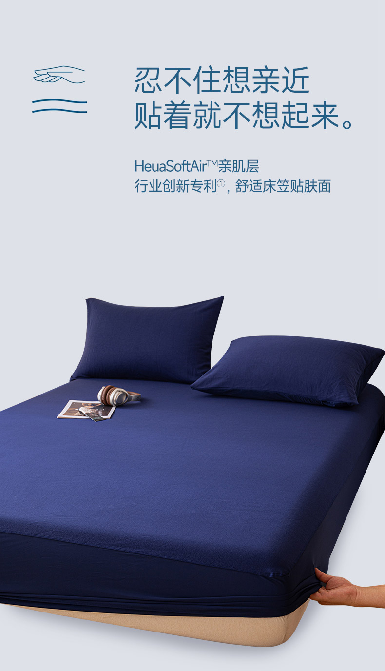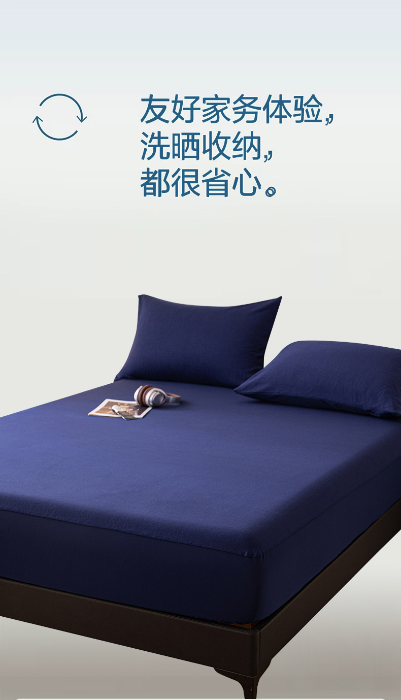 百寐 2025新款纯色耐脏亚朵同款深度睡眠床笠枕套床笠保护套单床笠单品床笠单件床笠 静海蓝