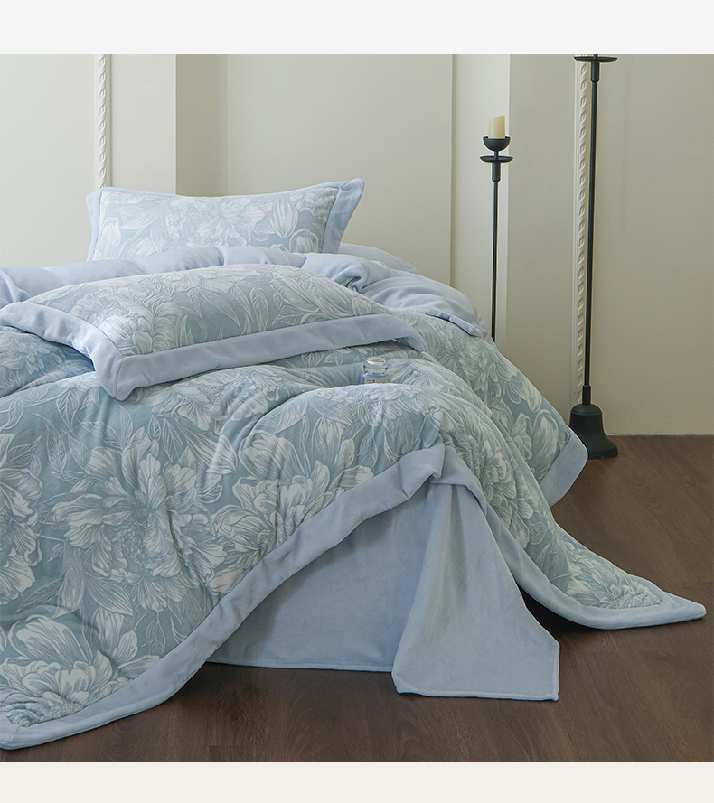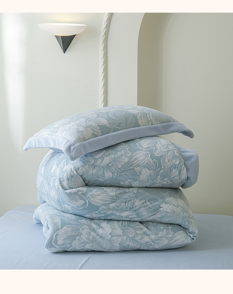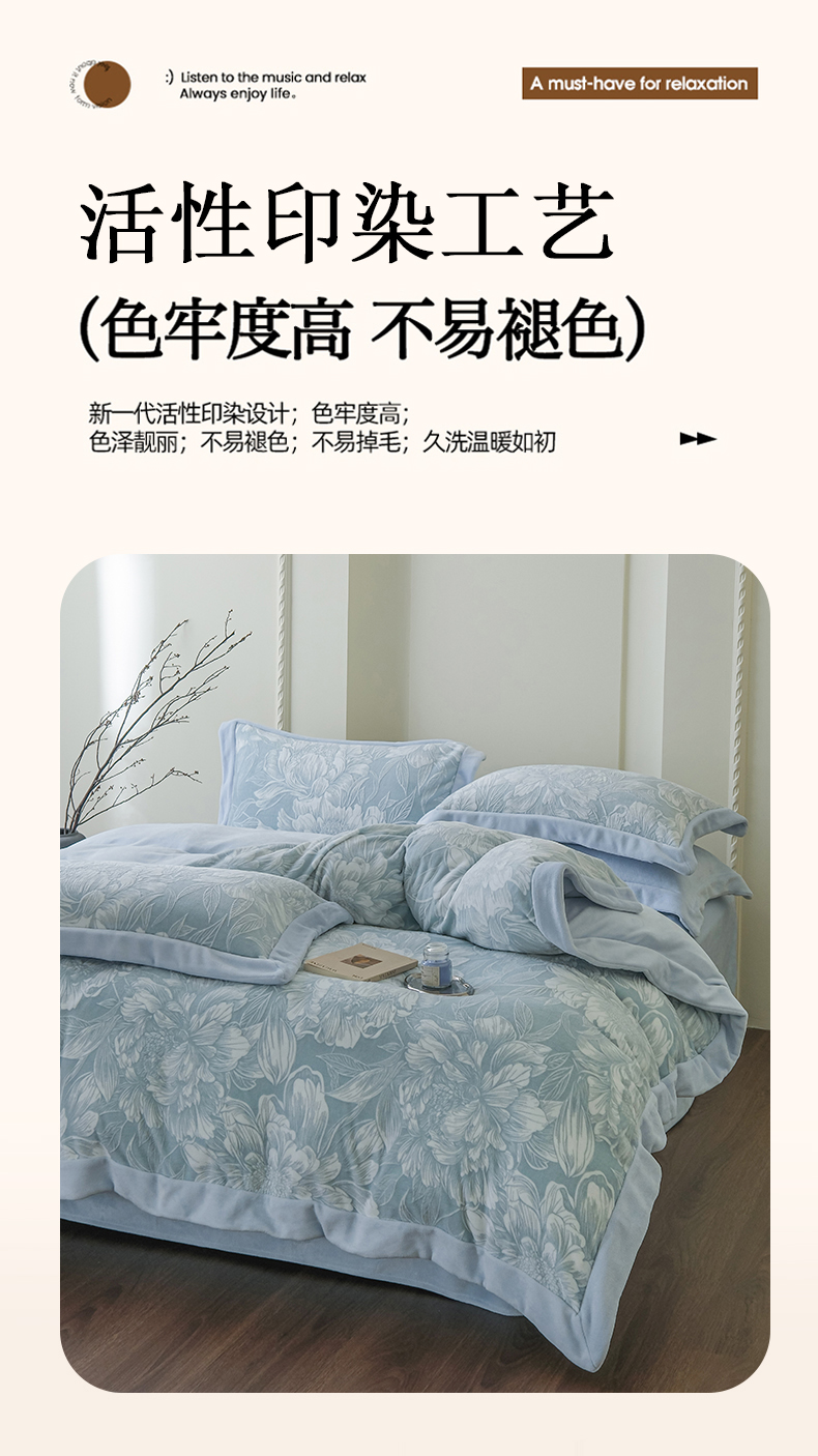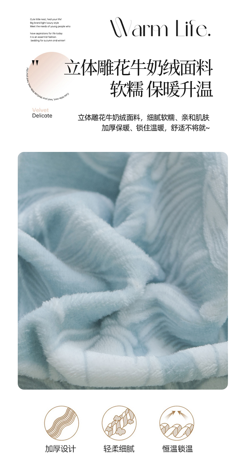 米奈家居 2025新款立体雕花拼角款牛奶绒四件套 花间集-蓝