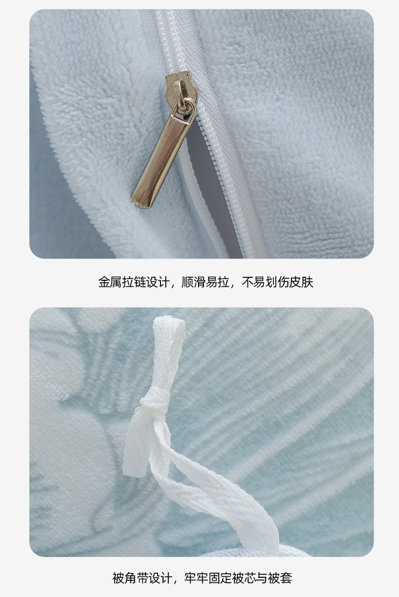 商品名称:米奈家居 2025新款立体雕花拼角款牛奶绒四件套 花间集-蓝