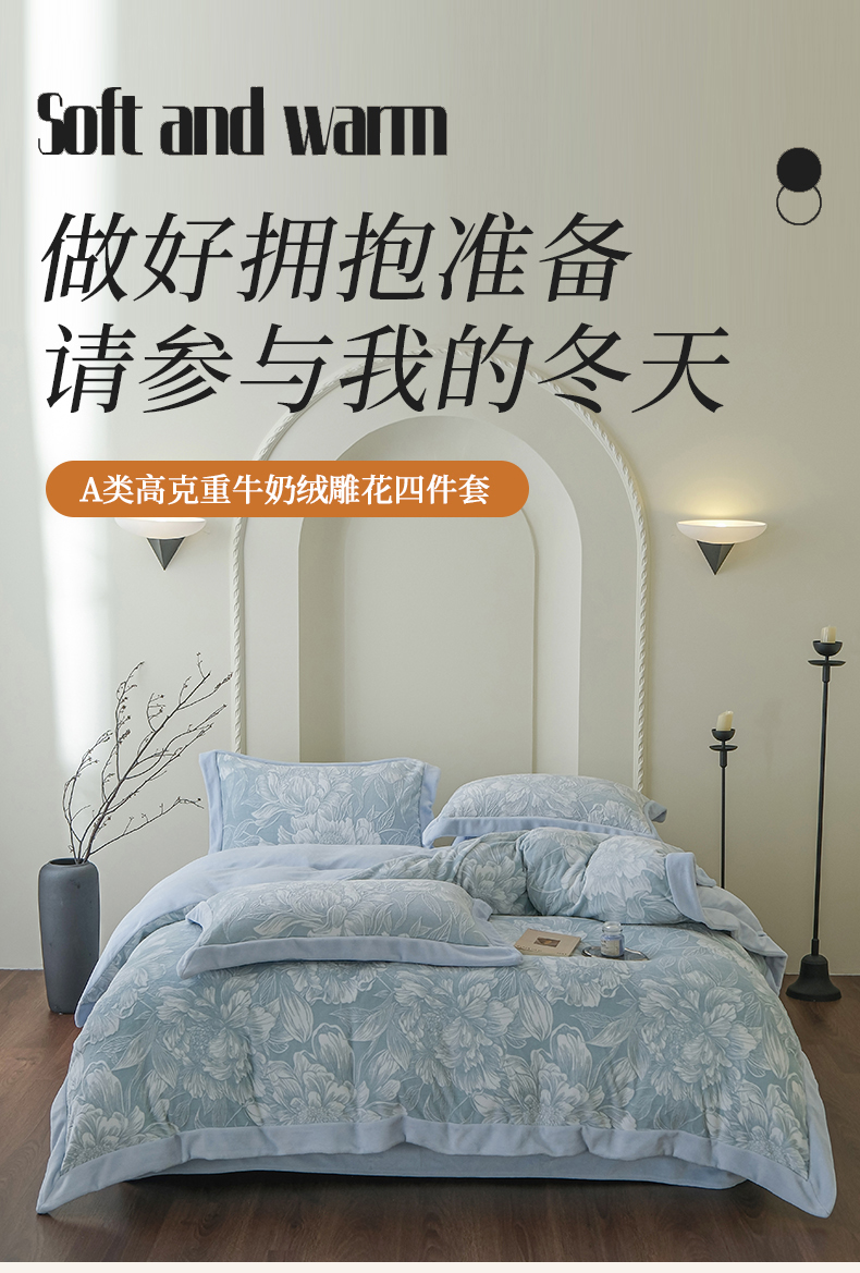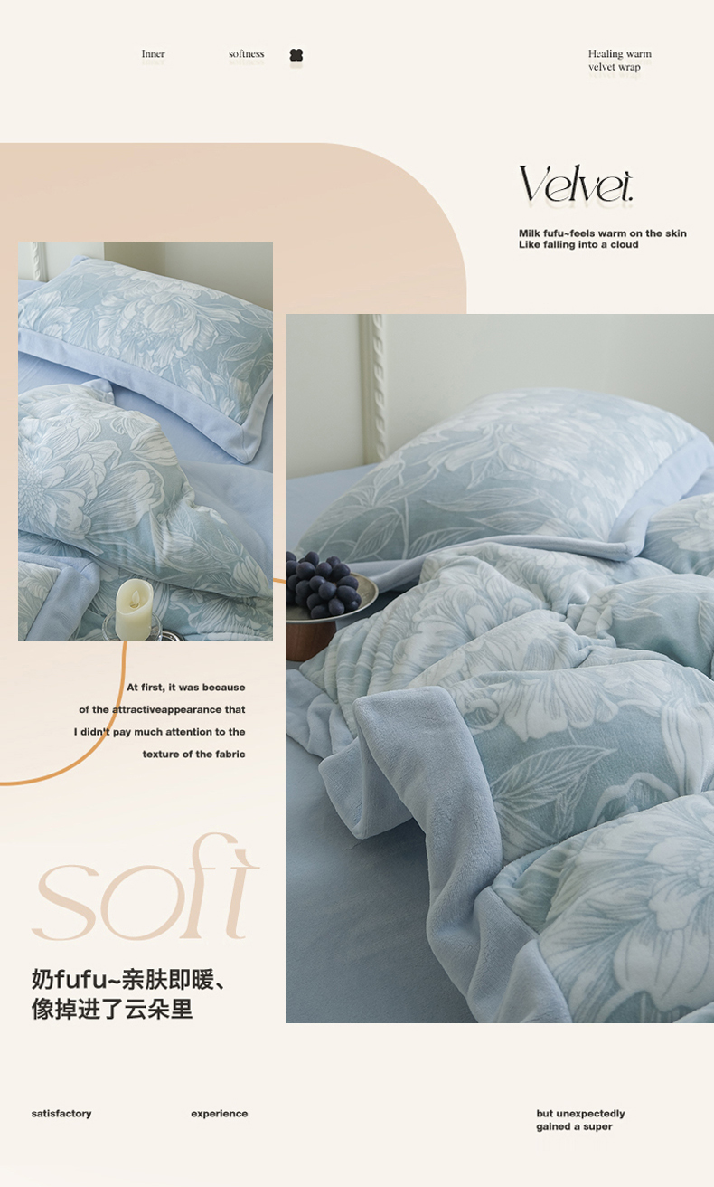 (总)米奈家居 2025新款立体雕花拼角款牛奶绒四件套,浮光-灰,浮光-咖,花间集-豆沙,花间集-蓝,花如玉-蓝,花如玉-驼,秋影-粉,秋影-灰蓝