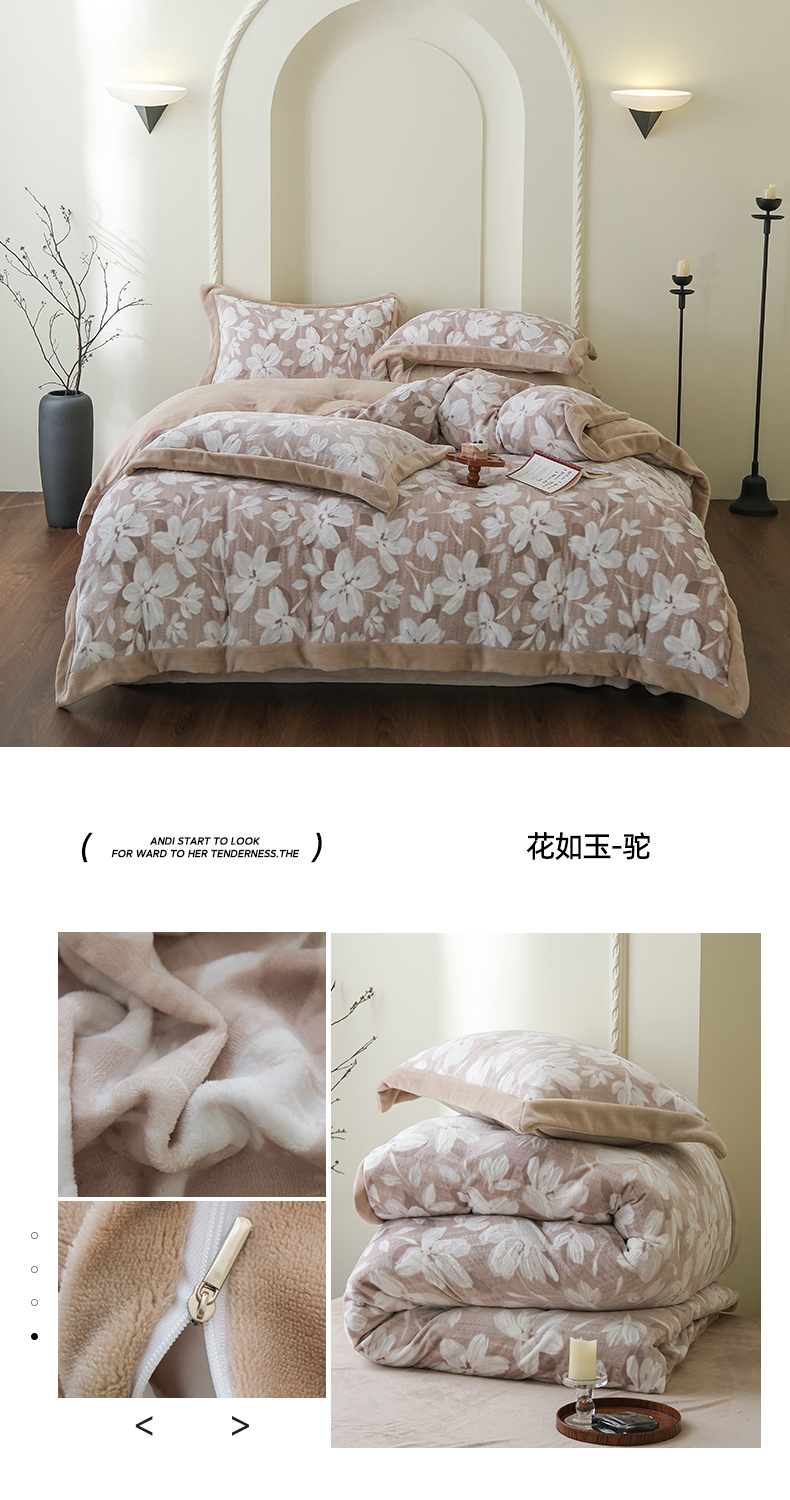 (总)米奈家居 2024新款A类牛奶雕花绒四件套-瑞丽,巴赫(卡其),巴赫(紫粉),花漾(淡雅粉),花漾(香槟),水墨(豆沙),水墨(卡其),邂逅(咖色),邂逅(绿色)