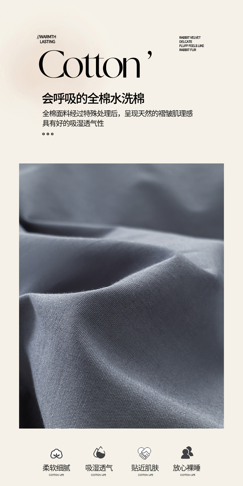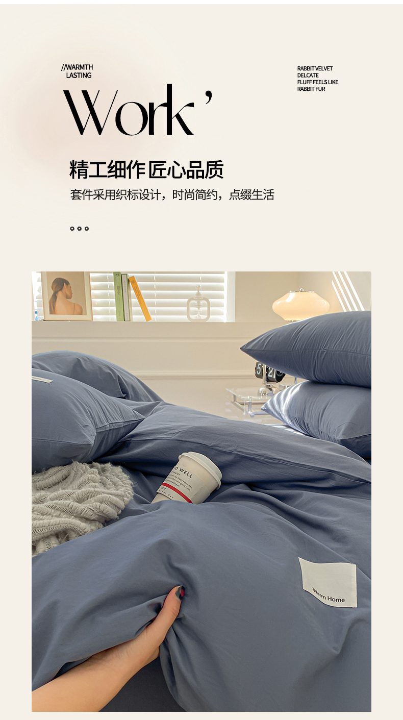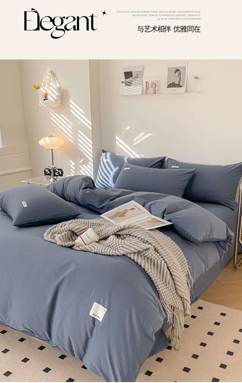 当前位置: 91家纺网 > 商品网购 > 床品套件 > 四件套 > 全棉普通四件套 > 蓝邻家纺 2025新款A类全棉纯棉水洗棉纯色贴标系列四件套-风格二 牛仔兰