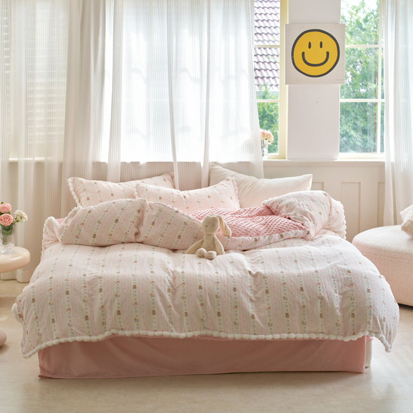 (总)洋铭区(原狠狠爱) 2025秋冬双层纱毛球球+豆豆绒四件套系列,爱莎玫瑰,丁香小花,复古 红樱桃,公主小熊,乖宝小熊,咖啡花香,萌趣宝宝,秘密花园,水仙绿花,小果粉花,小圆圆-深紫,小圆圆-黑,小圆圆-紫,紫蝶点点
