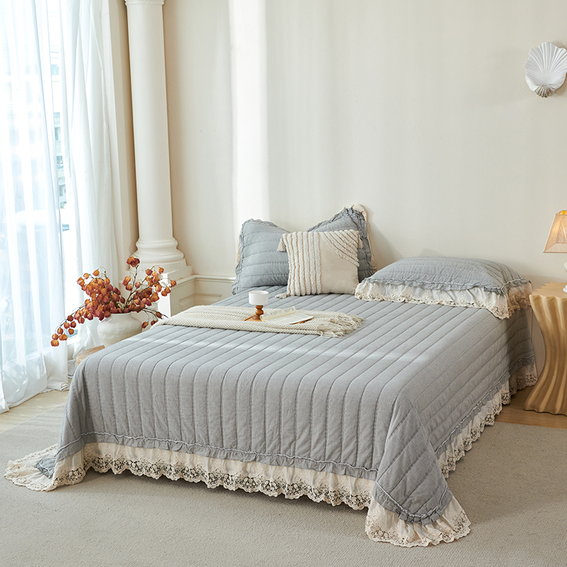 商品名称:桂雅居 2025新款舒适麻棉麻蕾丝花边单床盖床盖单件 烟墨灰