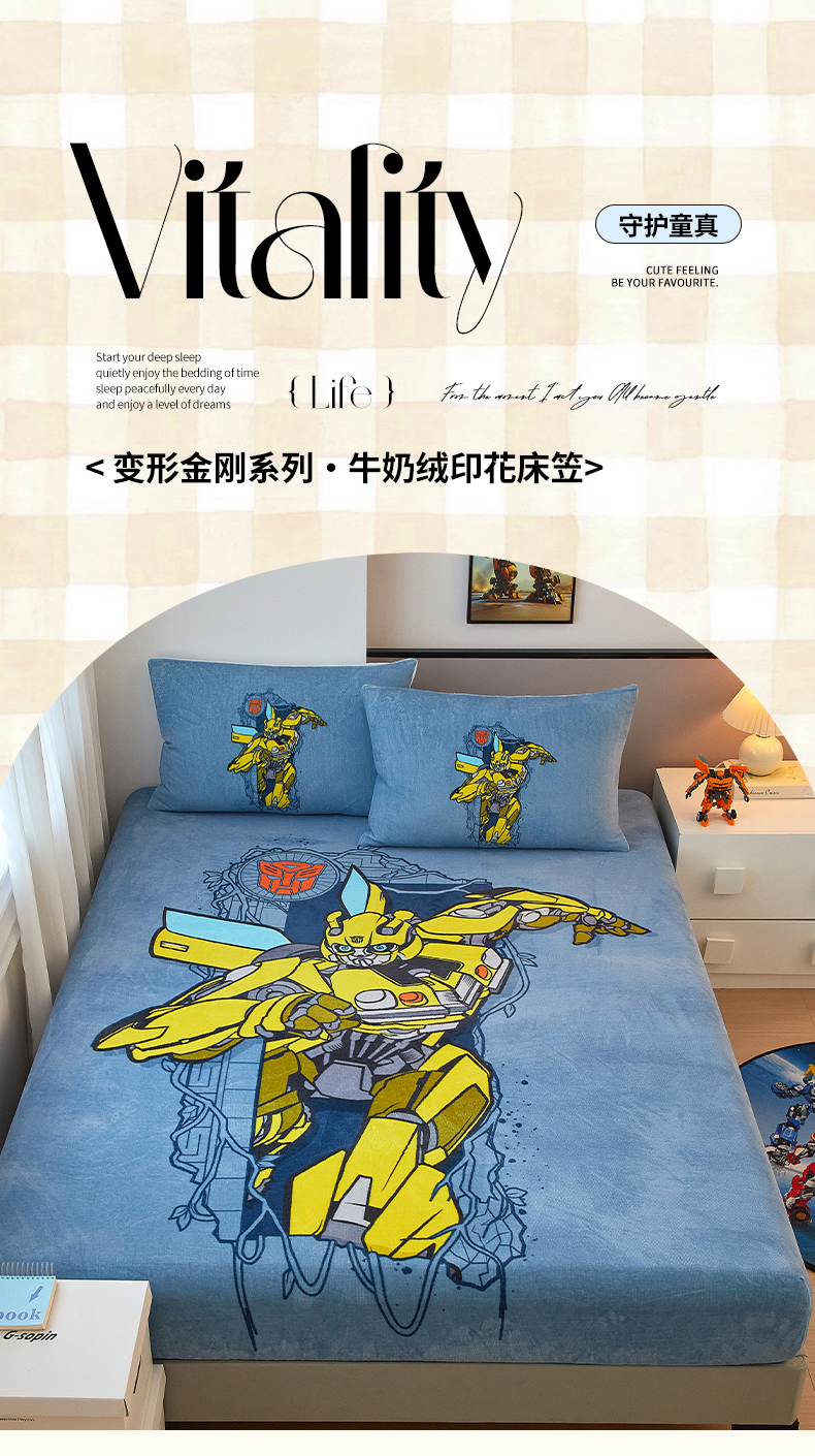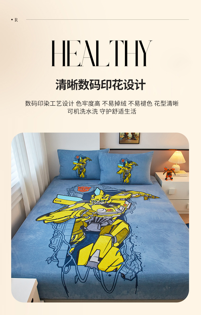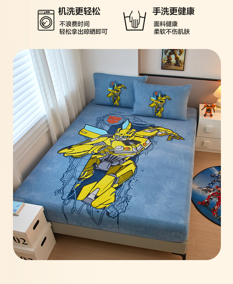 商品名称:蘭菲家纺 2025新款高克重亲肤保暖牛奶绒单品床笠-变形金刚 3号