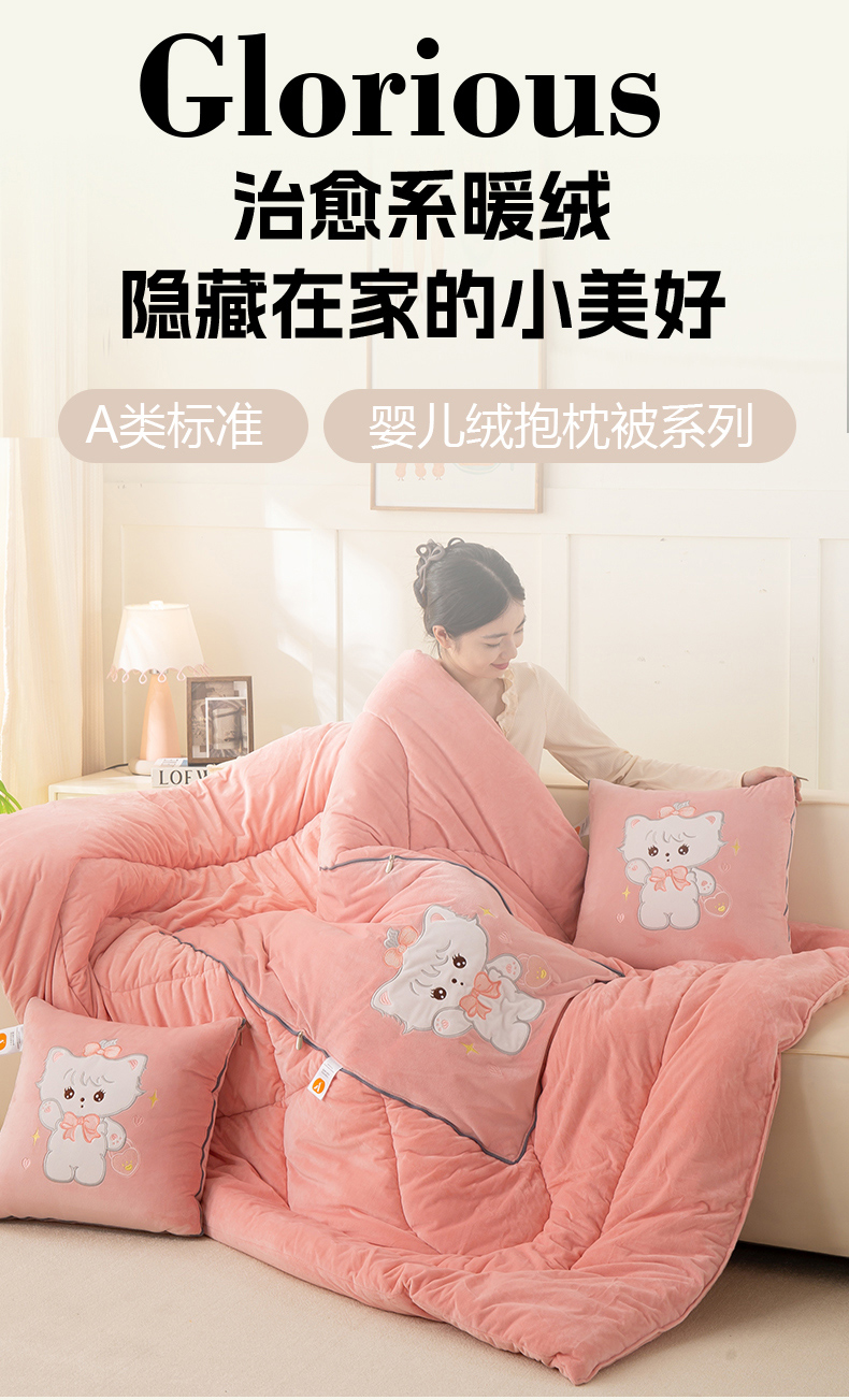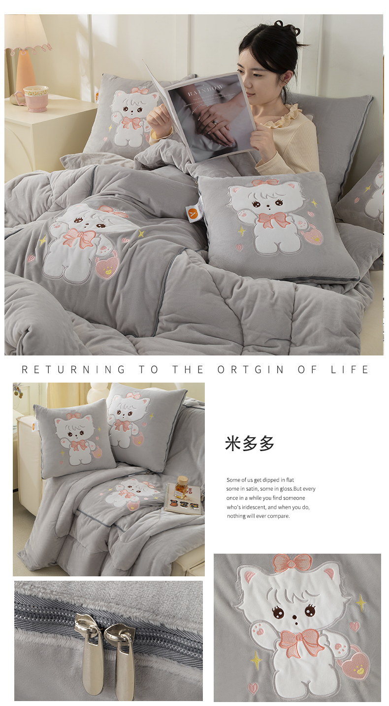 (总)多今家纺 2025新款加厚婴儿绒贴布刺绣抱枕被子-米多多系列,米多多-薄荷粉,米多多-浅灰,米多多-凤信紫,米多多-深灰,米多多-星郎蓝