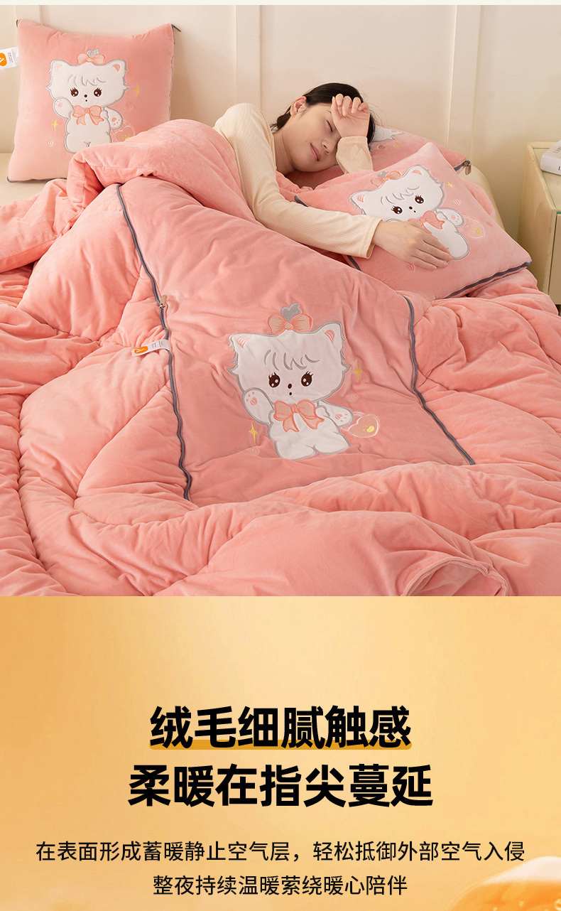 (总)多今家纺 2025新款加厚婴儿绒贴布刺绣抱枕被子-米多多系列