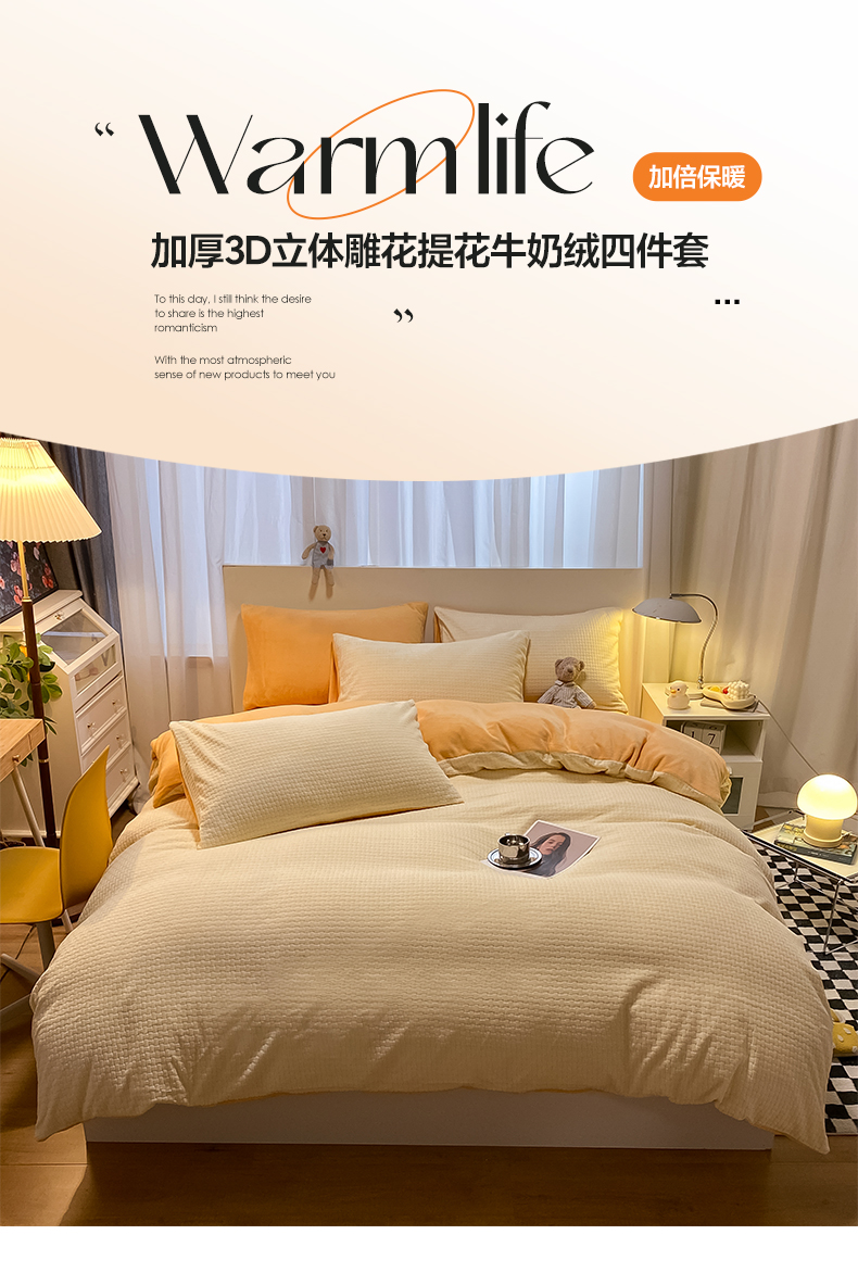 当前位置: 91家纺网 > 商品网购 > 床品套件 > 四件套 > 牛奶绒四件套 > 如一 2025新款3D雕花牛奶绒四件套 华夫格白