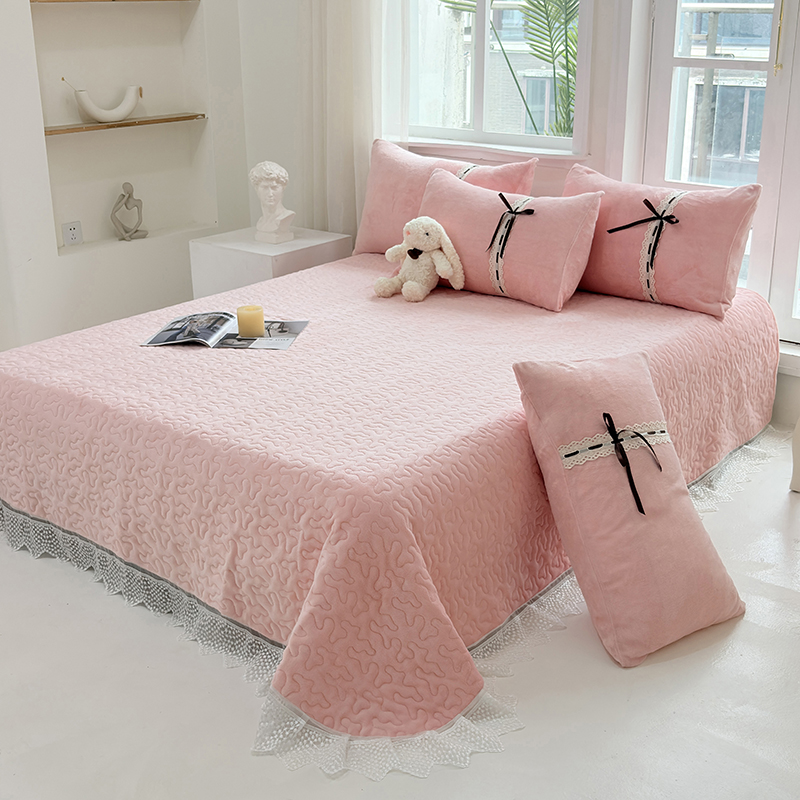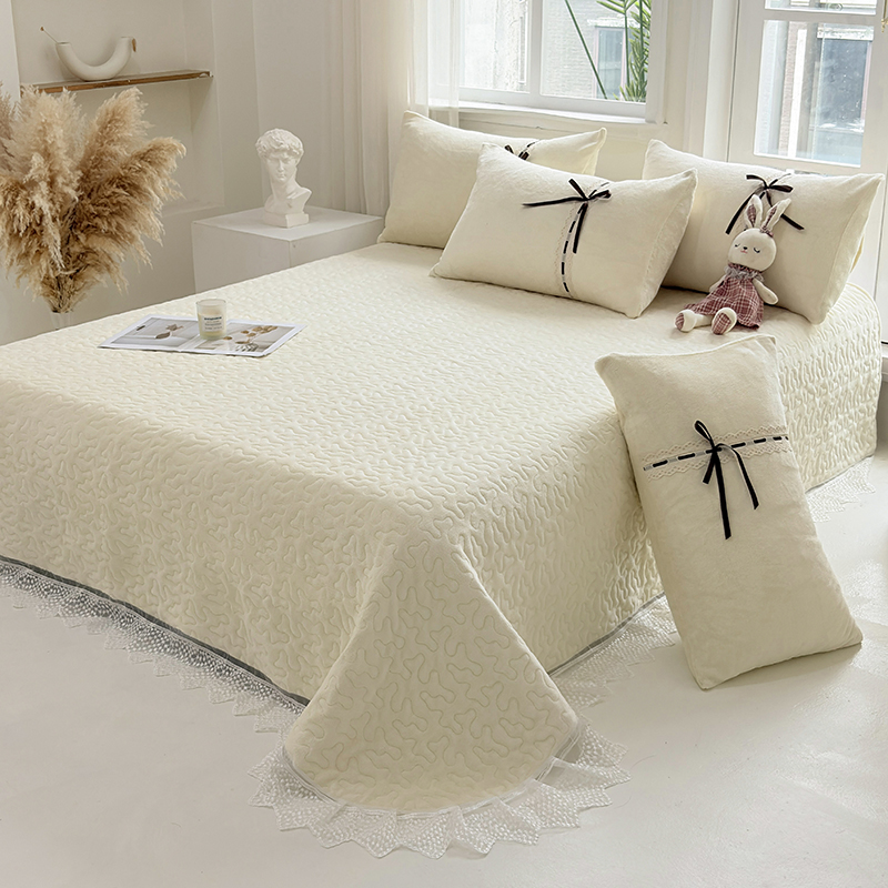 (总)韩秀家纺 2025新款加厚牛奶绒蝴蝶蕾丝床盖花边夹棉床盖三件套高克重珊瑚绒单床盖-莫奈花园,莫奈花园粉玉,莫奈花园灰,莫奈花园咖,莫奈花园米,莫奈花园青