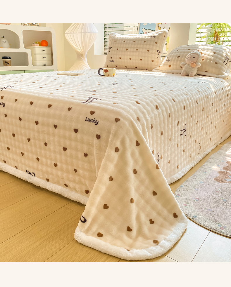 眠势力 2025新款暖绒泡泡床单冬季保暖被单牛奶绒床单罩 爱心咖【暖绒泡泡床单】