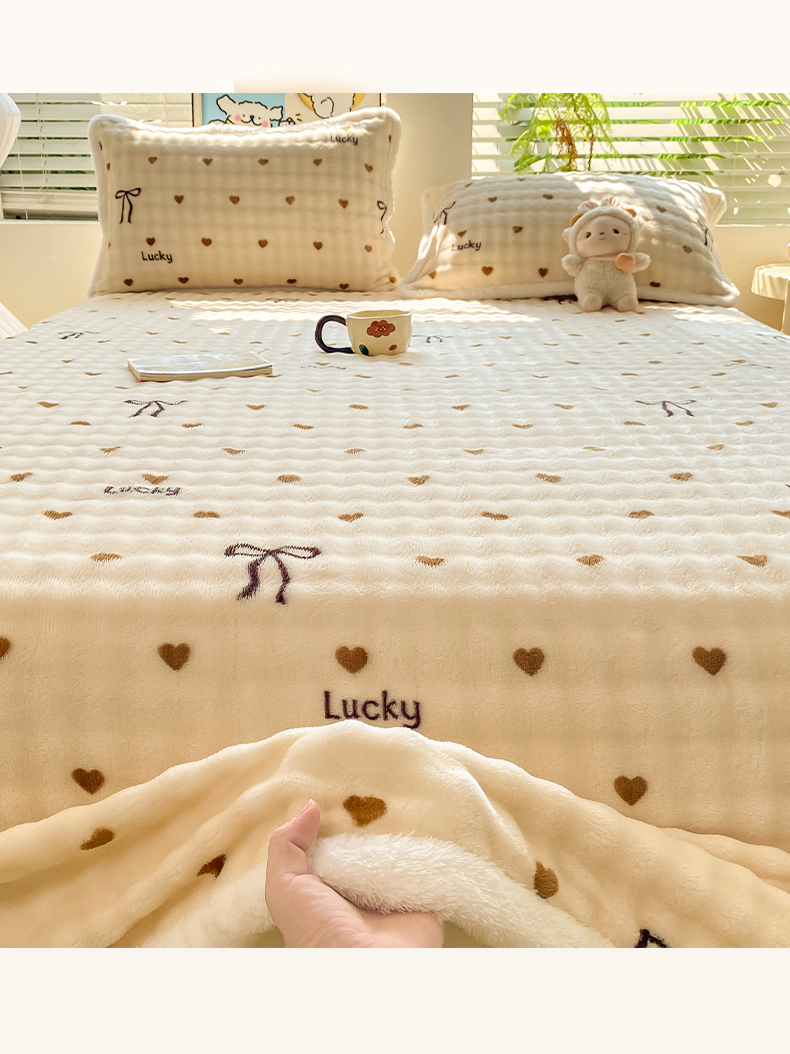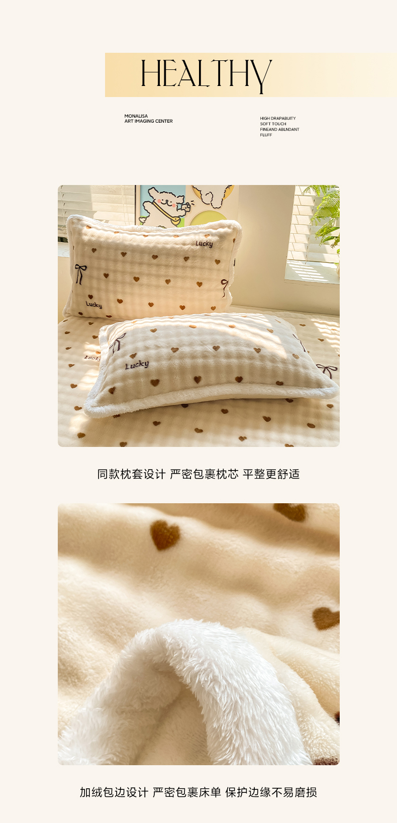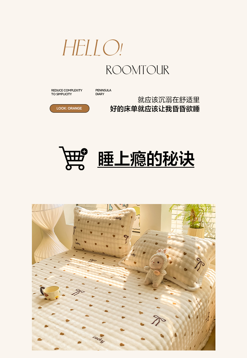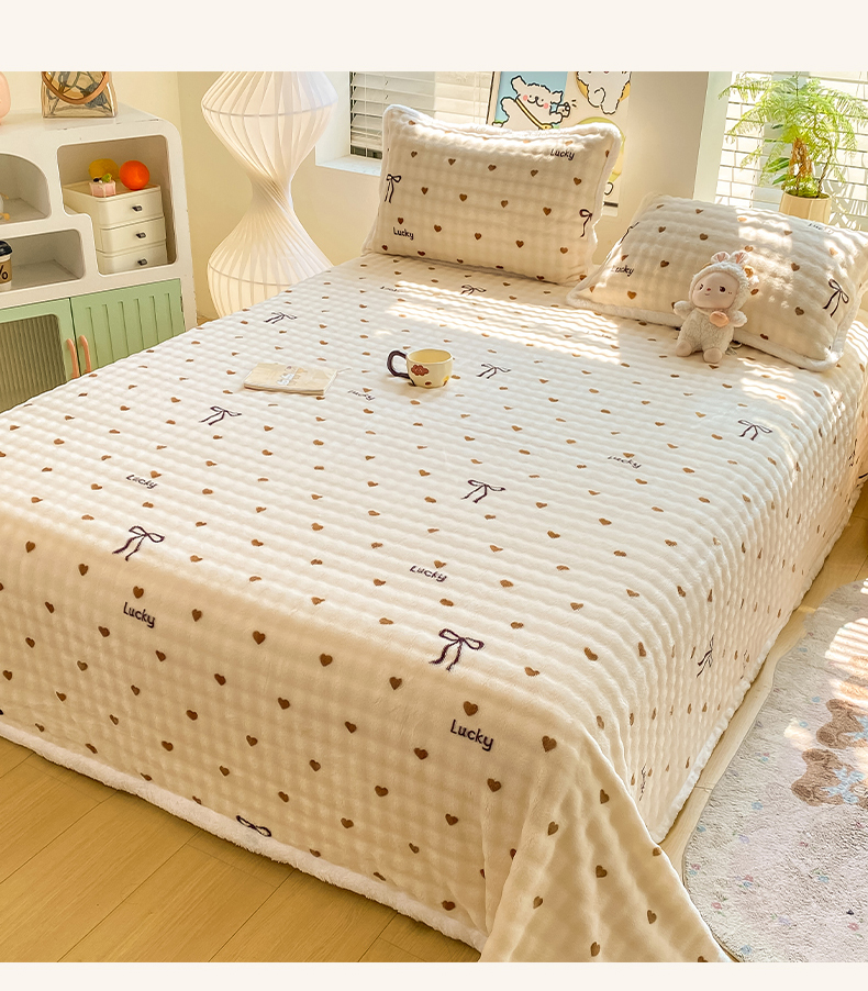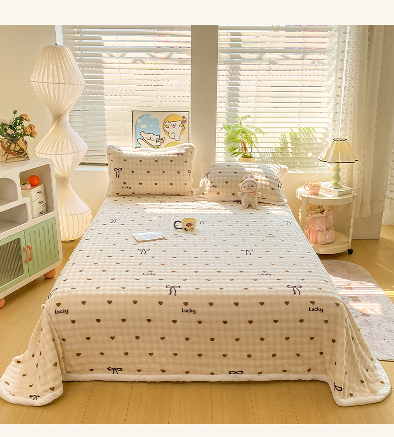 • 91家纺网 家纺一手货源 找家纺 眠势力 2025新款暖绒泡泡床单冬季保暖被单牛奶绒床单罩 爱心咖【暖绒泡泡床单】