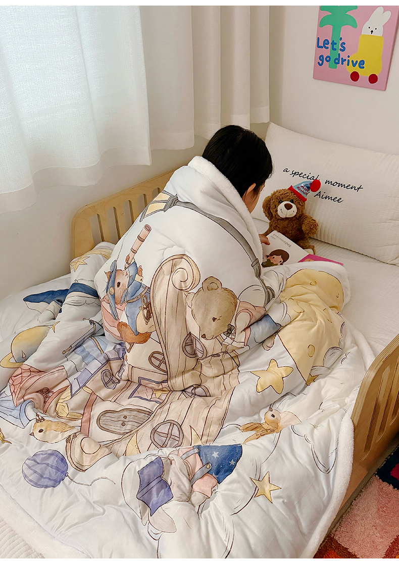 (总)荷马之梦 2025新款A类小版针织棉数码印花手绘原创豆豆绒被芯儿童被子春秋被冬被-梦境,精灵小兔,恐龙之家,跑跑小熊猫B,糖果女孩,小王子