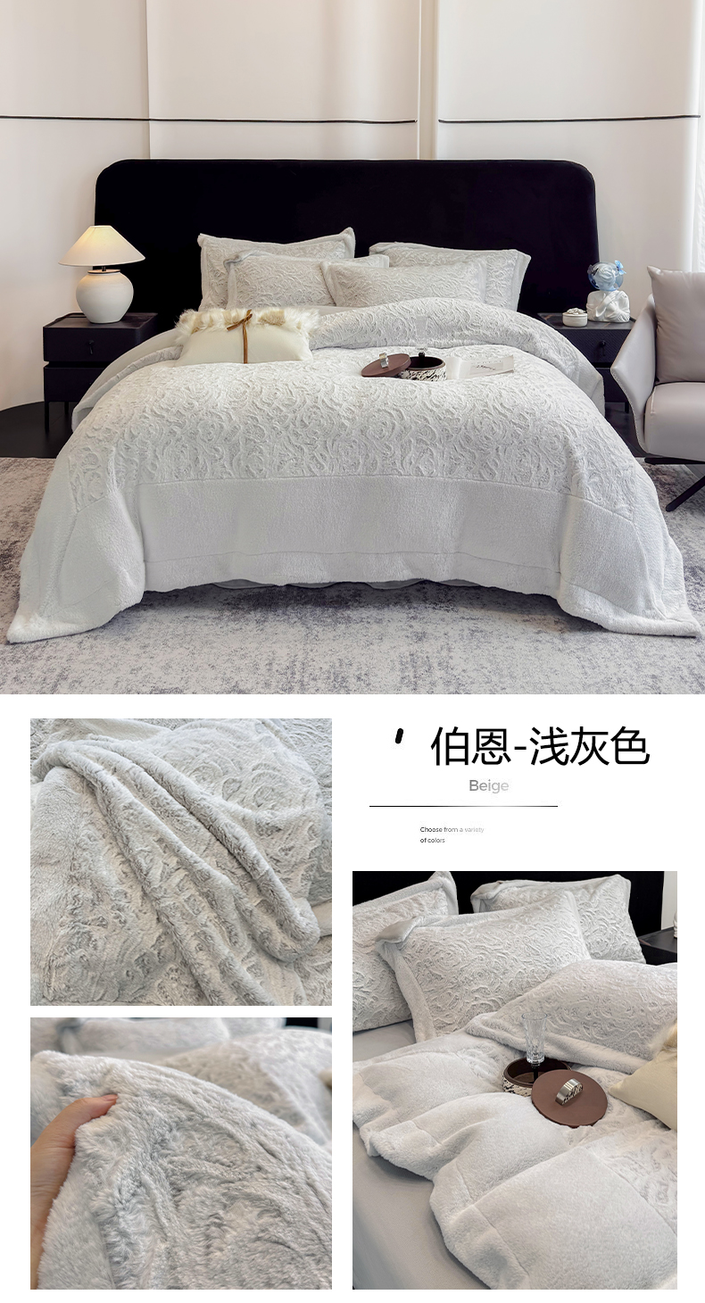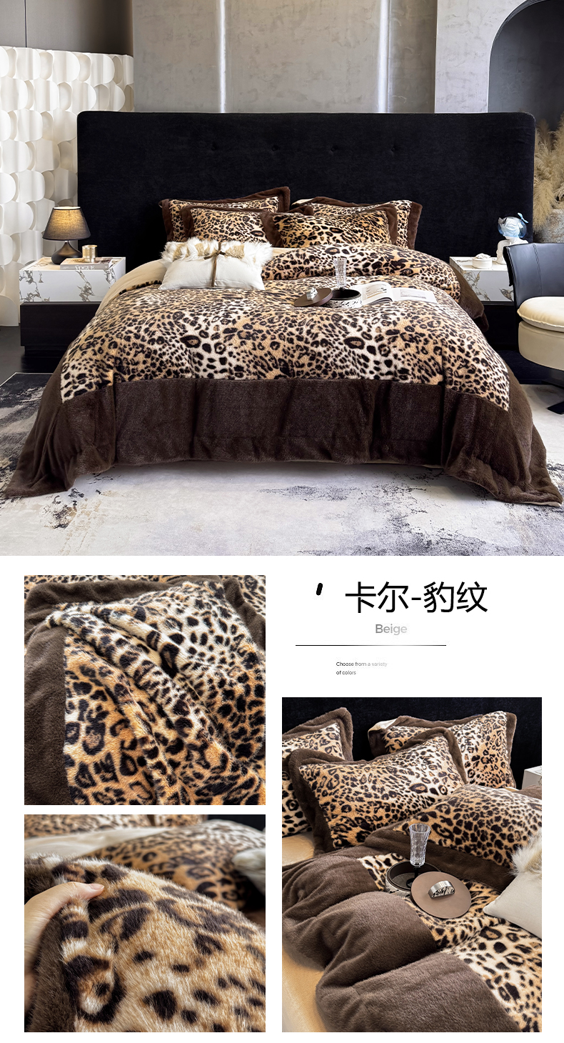 (总)丞音家纺 11斤新款秋冬A类轻奢皮草绒加厚保暖水貂绒牛奶绒床上用品珊瑚绒四件套床单被套,伯恩-浅灰色,伯恩-抹茶咖,伯恩-温柔粉,卡尔-豹纹