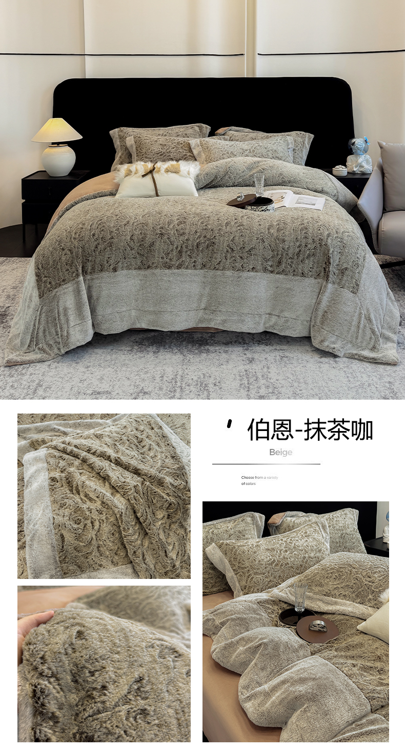 (总)丞音家纺 2025秋冬新款A类轻奢皮草绒加厚水貂绒保暖牛奶绒床上用品珊瑚绒四件套床单被套,路易斯-豆沙粉,路易斯-深咖色,路易斯-高级灰